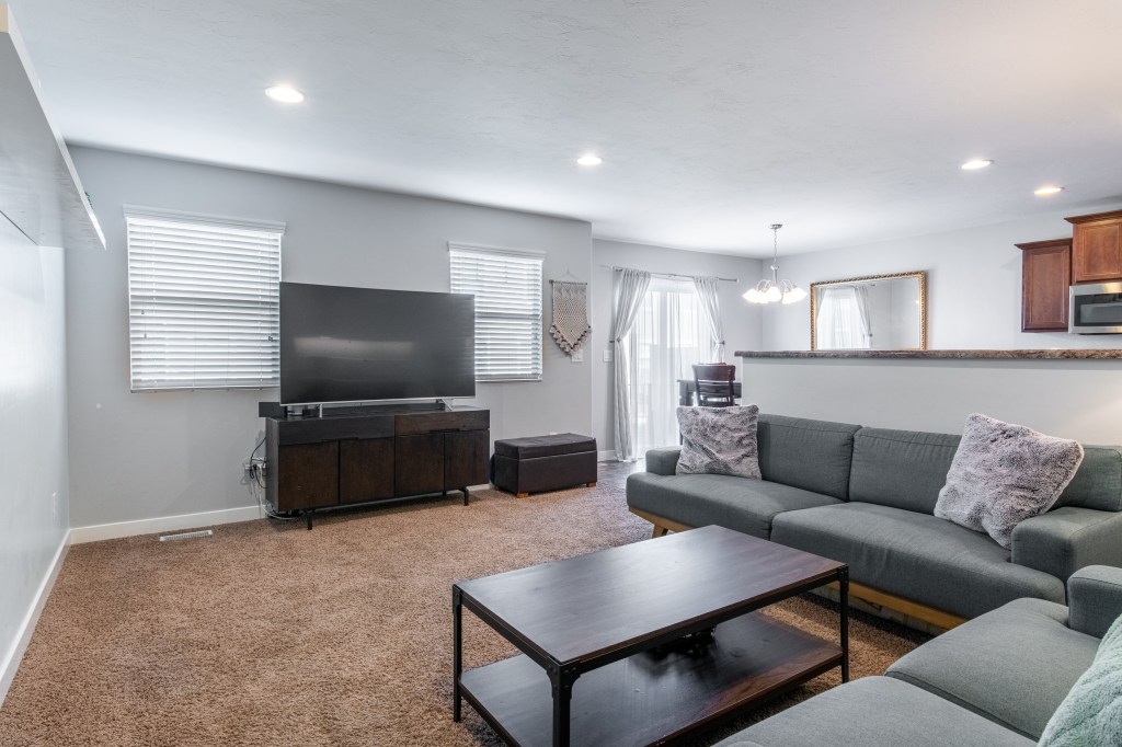 Spacious townhome in Rosecrest Village! Open concept layout with plenty of windows & natural light throughout. Updated with 3 tone paint & very nicely maintained. Kitchen features a gas range, dining spot, ample storage & pantry. All 3 bedrooms are upstairs along with the laundry area. The main suite is large with TWO walk-in closets & an en suite bathroom. One of the other bedrooms has a larger closet than you would expect as well! Basement is finished with another large living area, ½ bath, fireplace & storage. You will love the community which has a pool, clubhouse & more. Easy access to Mountain View Corridor & there are multiple parks, hiking trails & schools close by!