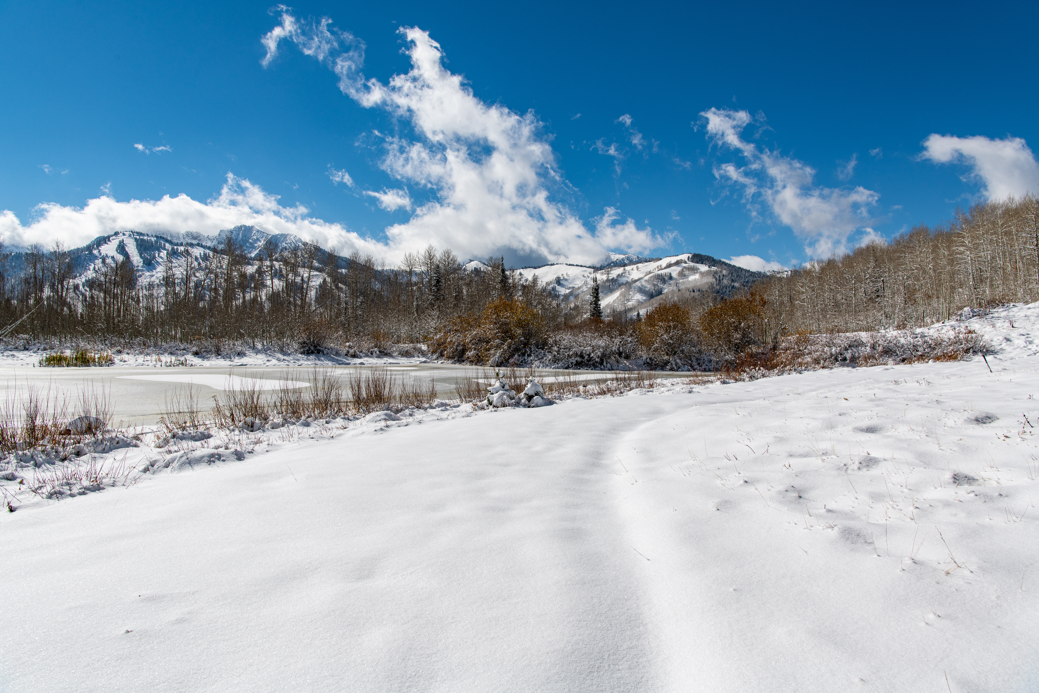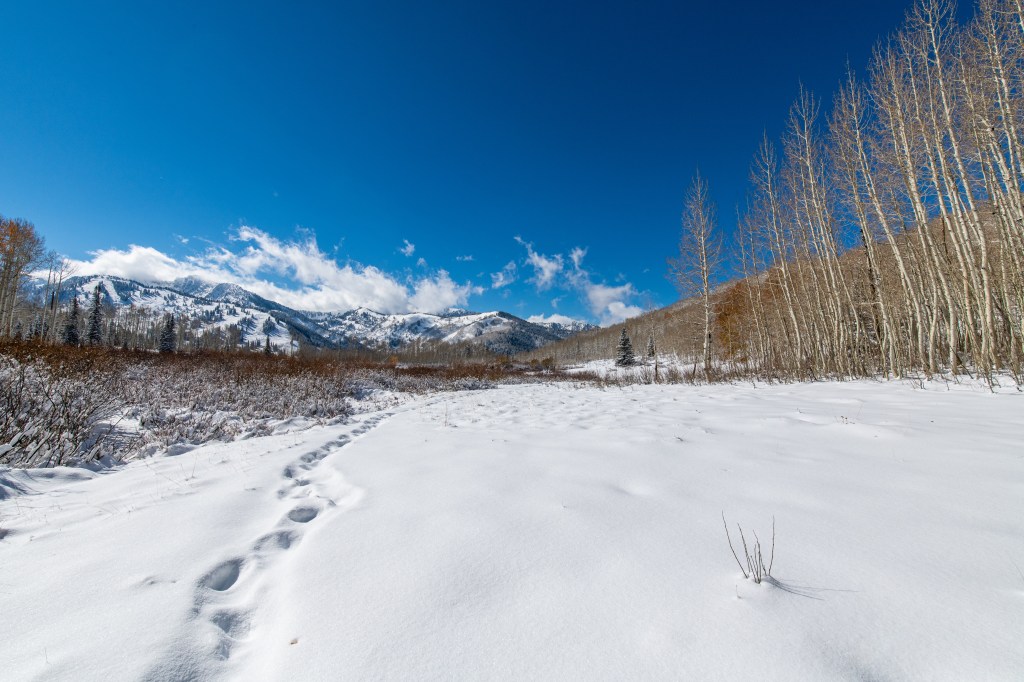 Willow Lake is a pretty & easy hike up Big Cottonwood Canyon. We tracked it at just over 3 miles, it is easy with a few steep spots, but nothing wild. We went mid October, right after the first big snowfall & it was super pretty & quiet- we had the trail all to ourselves. We just did it in our hiking boots, our Yaktrax would have been nice too, but we were OK without them. Nice views & we always love a hike that ends at a lake! We have done this multiple times, you can also go up & over the hill that overlooks it, pretty neat!