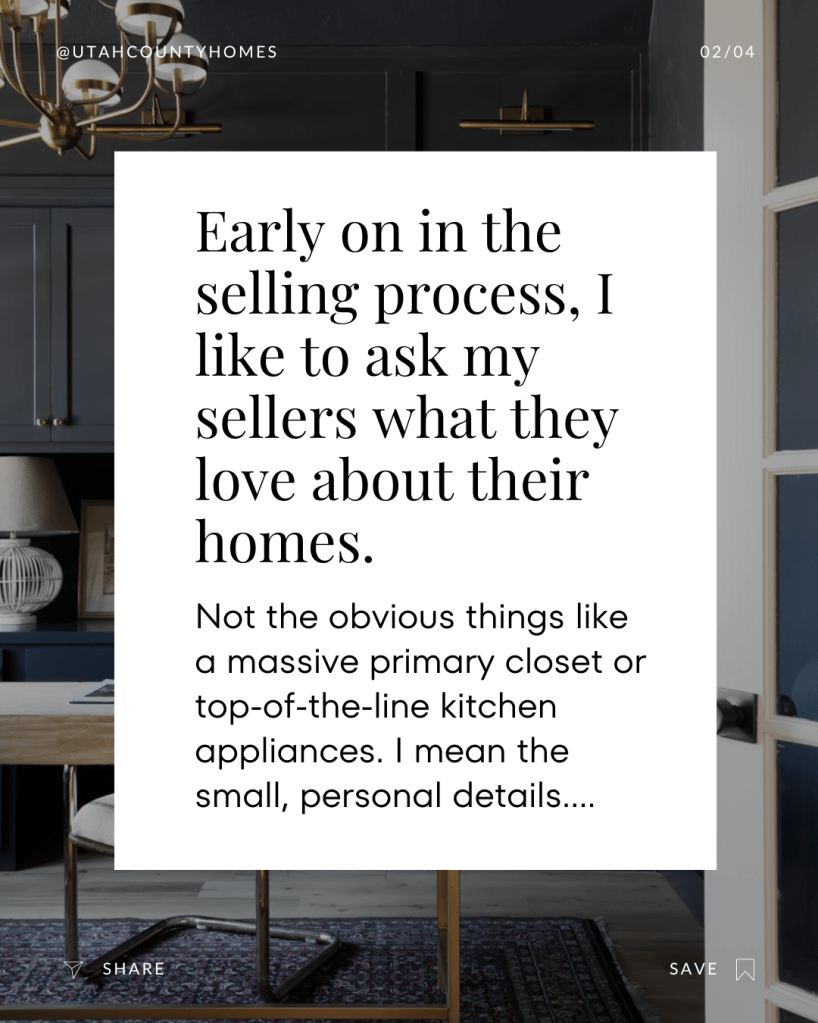 That’s why, I like to ask my sellers what they love about their homes.