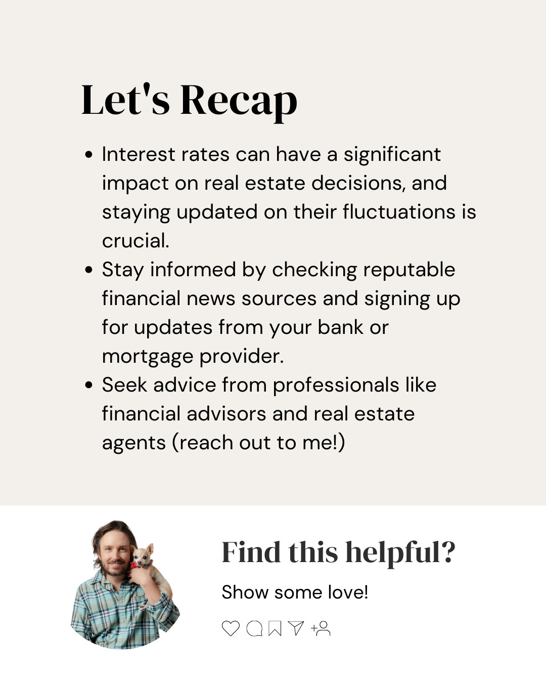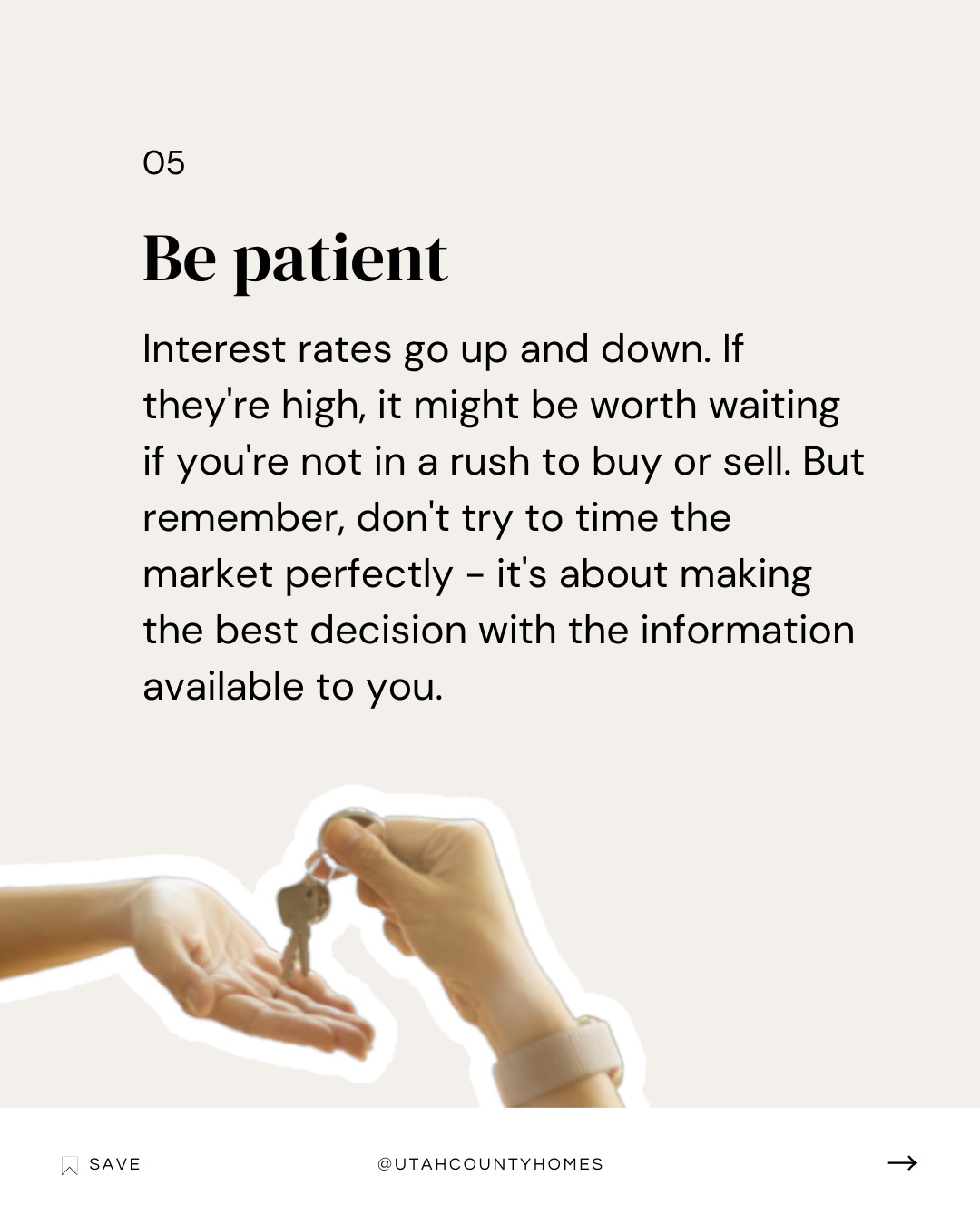 5) Be patient: Interest rates go up and down. If they’re high, it might be worth waiting if you’re not in a rush to buy or sell. But remember, don’t try to time the market perfectly – it’s about making the best decision with the information available to you.
