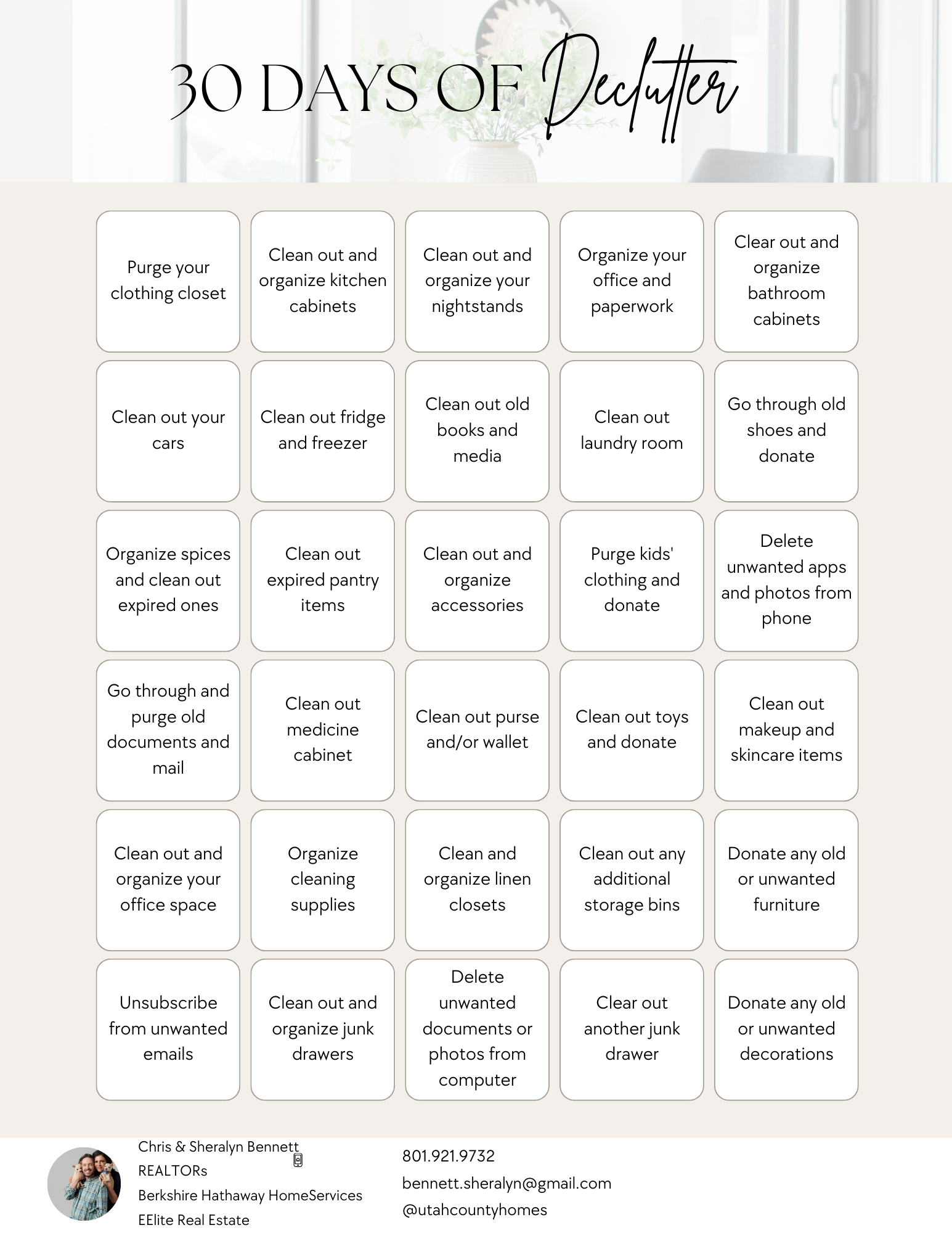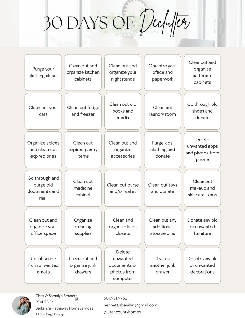 I LOVE decluttering & I love checklists!!! Join me on a 30 day decluttering challenge!!! Step by step, day by day, we can do it!!