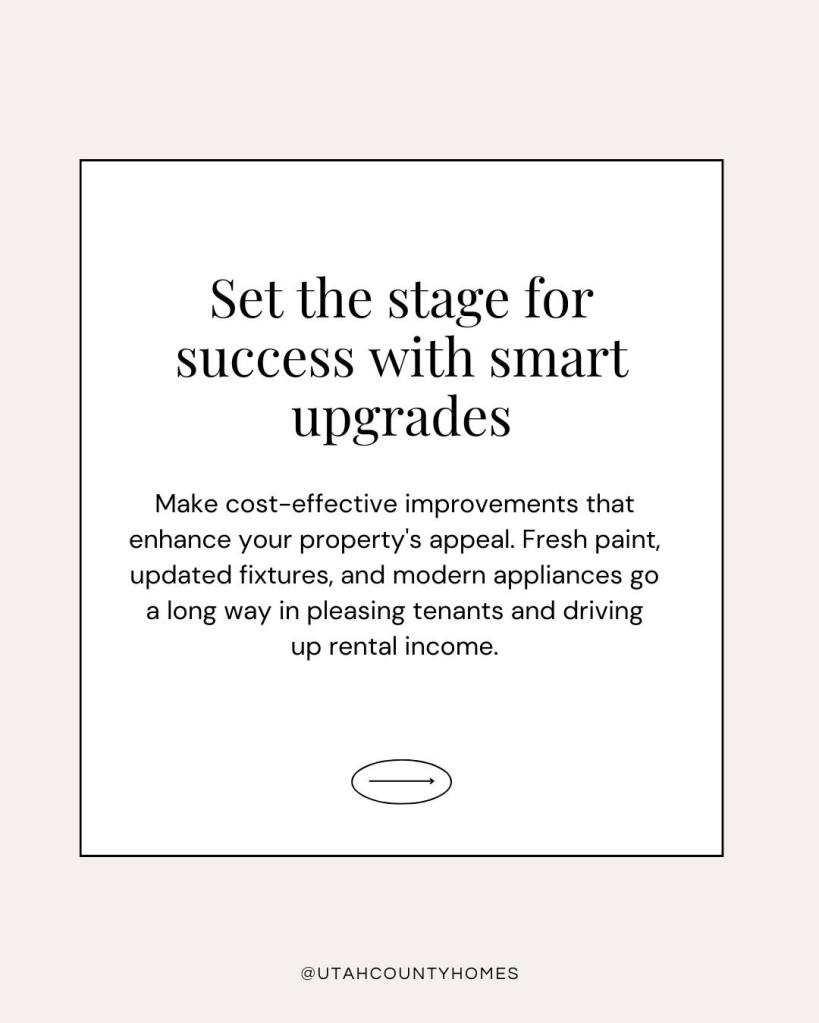 • Set the stage for success with smart upgrades. Make cost-effective improvements that enhance your property’s appeal. Fresh paint, updated fixtures, and modern appliances go a long way in pleasing tenants and driving up rental income.