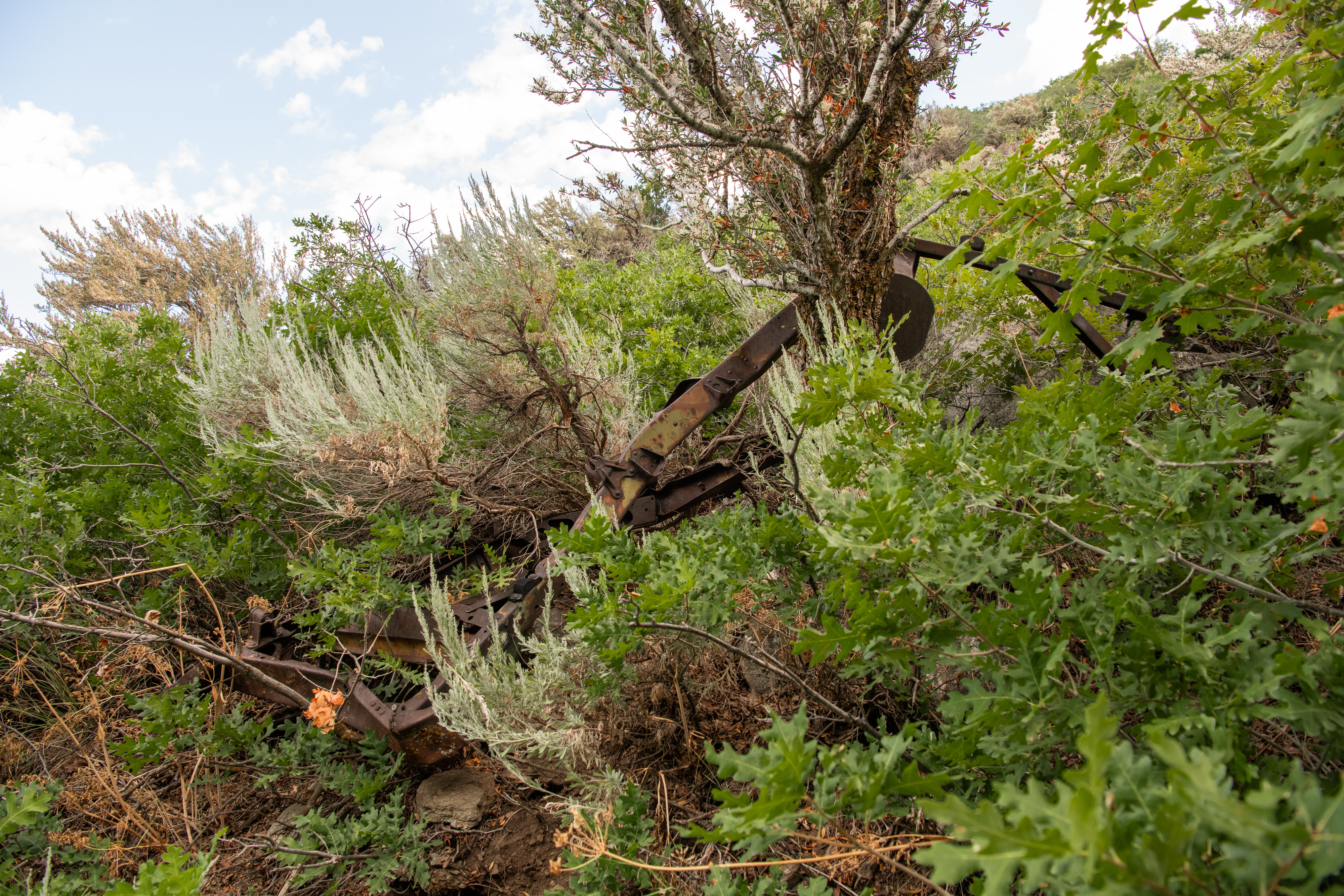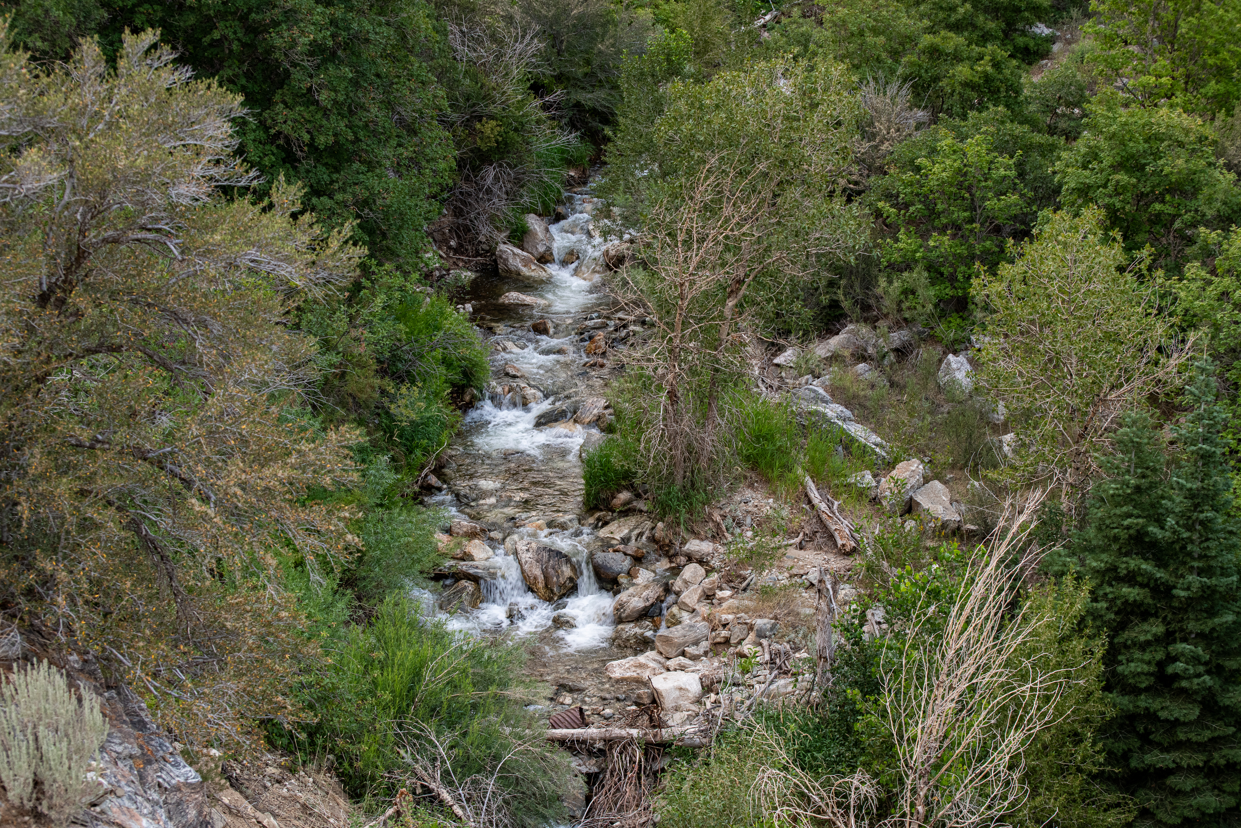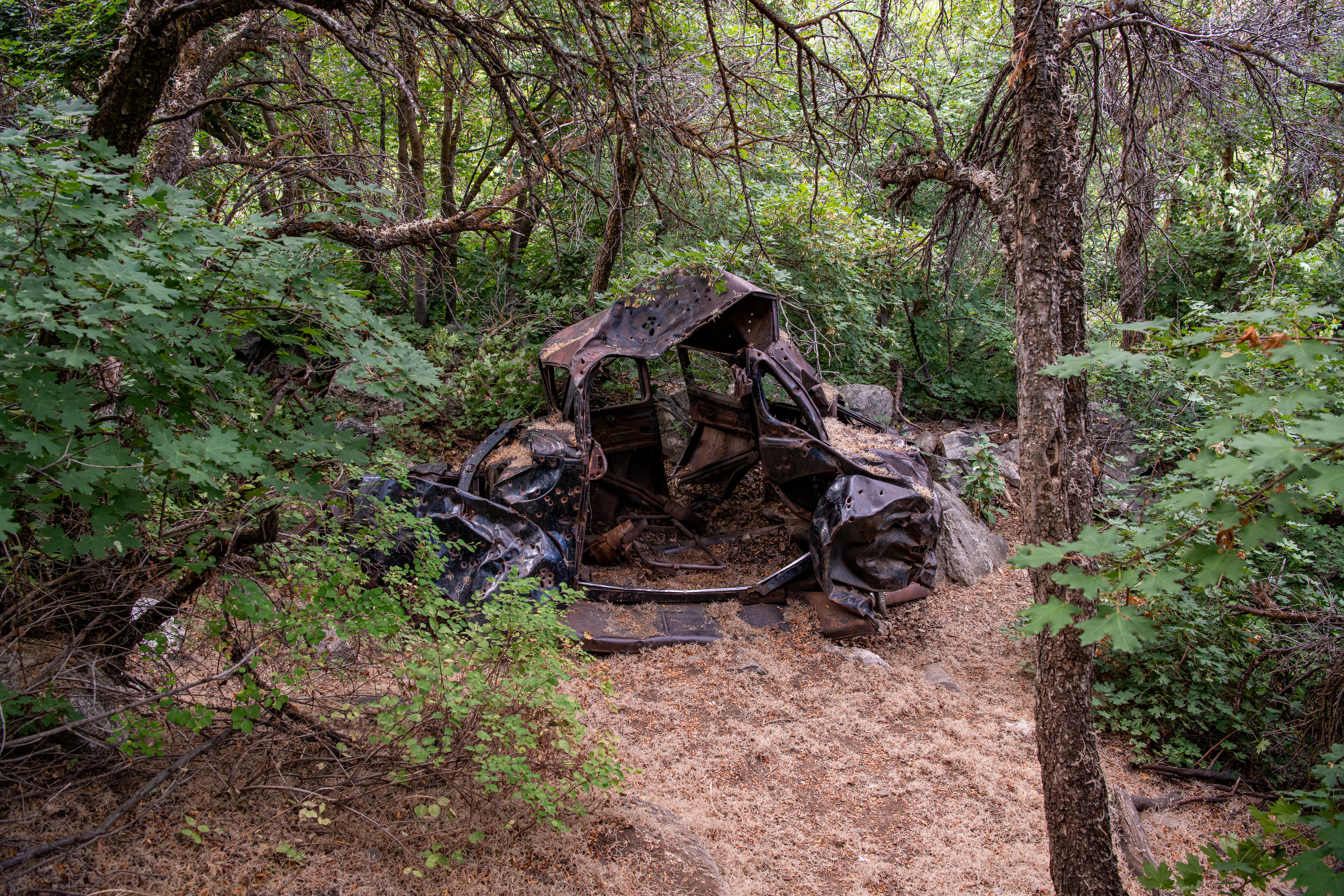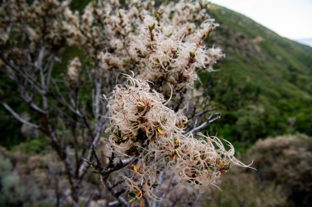 Farmington Creek Waterfall is a moderate trail. At just about 3.5 miles total, most can do this. There were some steep spots, but nothing crazy. There are busted up vehicles off the trail & some flowers popping up. To get to the waterfall, we took rope down and switch backs back up. There is a yellow ziptie on a tree marking the spot to turn right to use the switchbacks to go down.