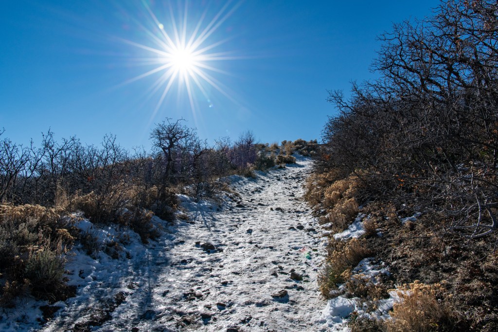 Alien Tower in Draper is an easy hike with beautiful views! There is a bit of snow, ice & mud. We were glad to have out Yaktrax on on the way down.