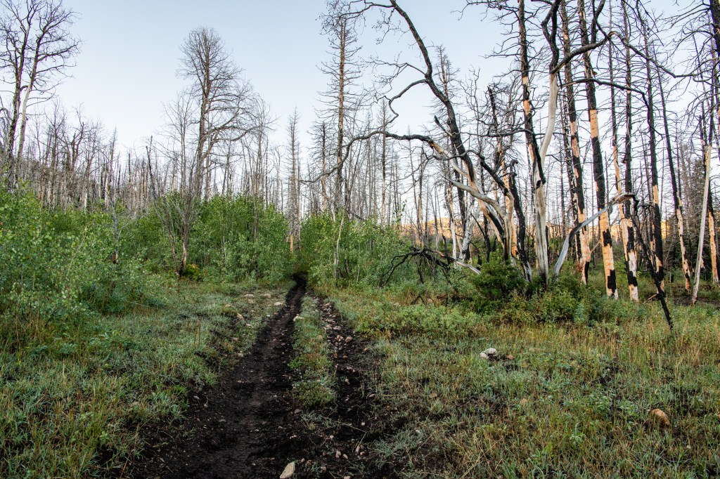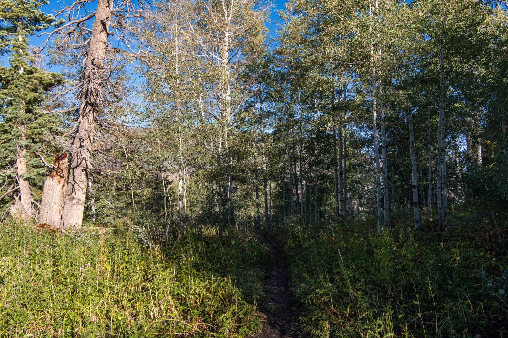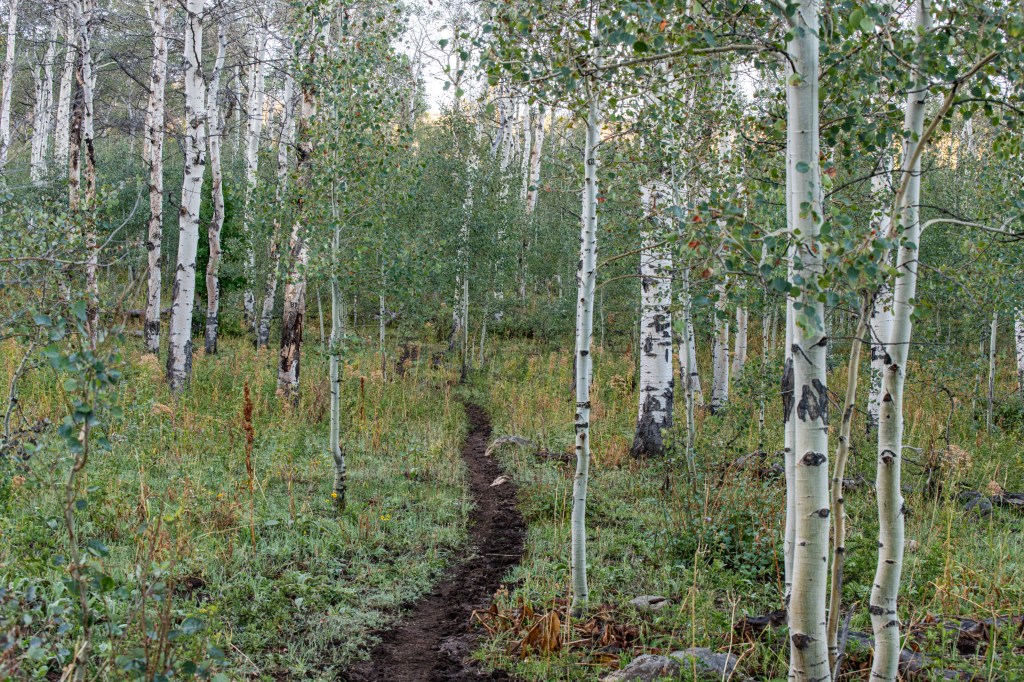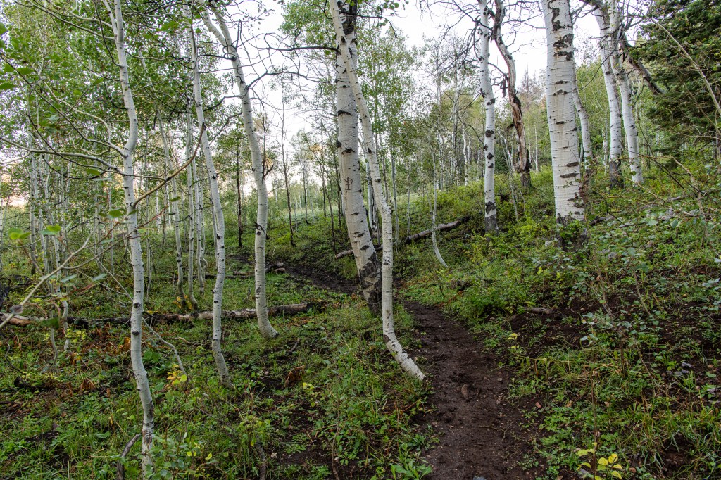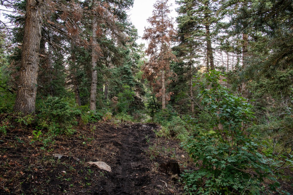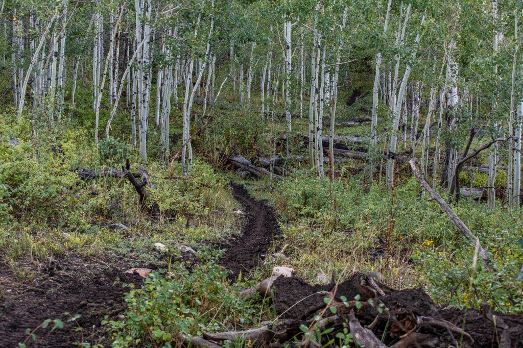 Lizard Lake is a moderate trail up Payson Canyon. We tracked this at about 5.5 miles total. There are some steep spots. Nice views & we saw deer, turkeys, grouse, cows & heard elk bugling. There were some muddy spots from the rains yesterday to work around. The lake was actually more of a drizzle, haha. But it was still enjoyable, very secluded, only one horseback rider that passed us.