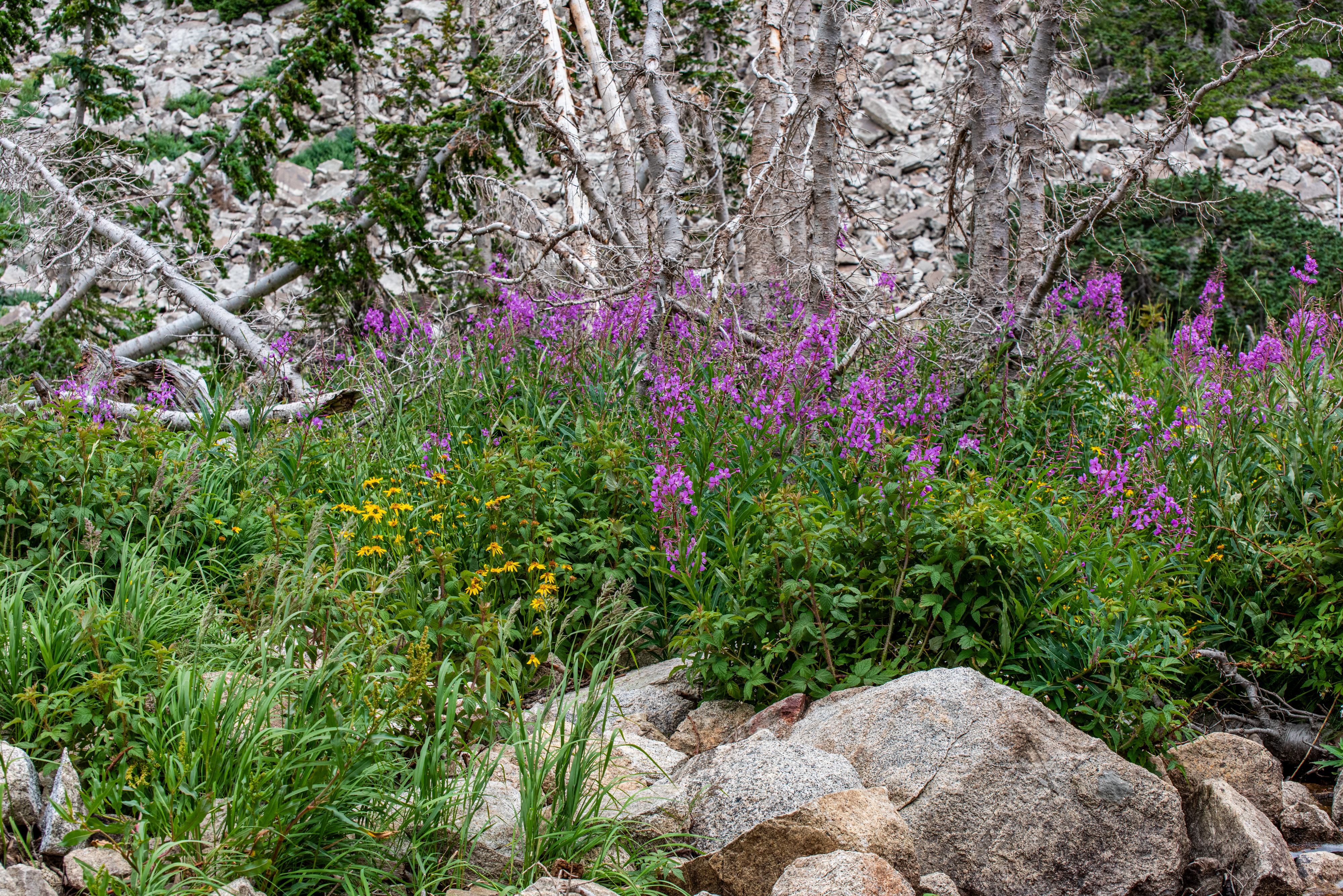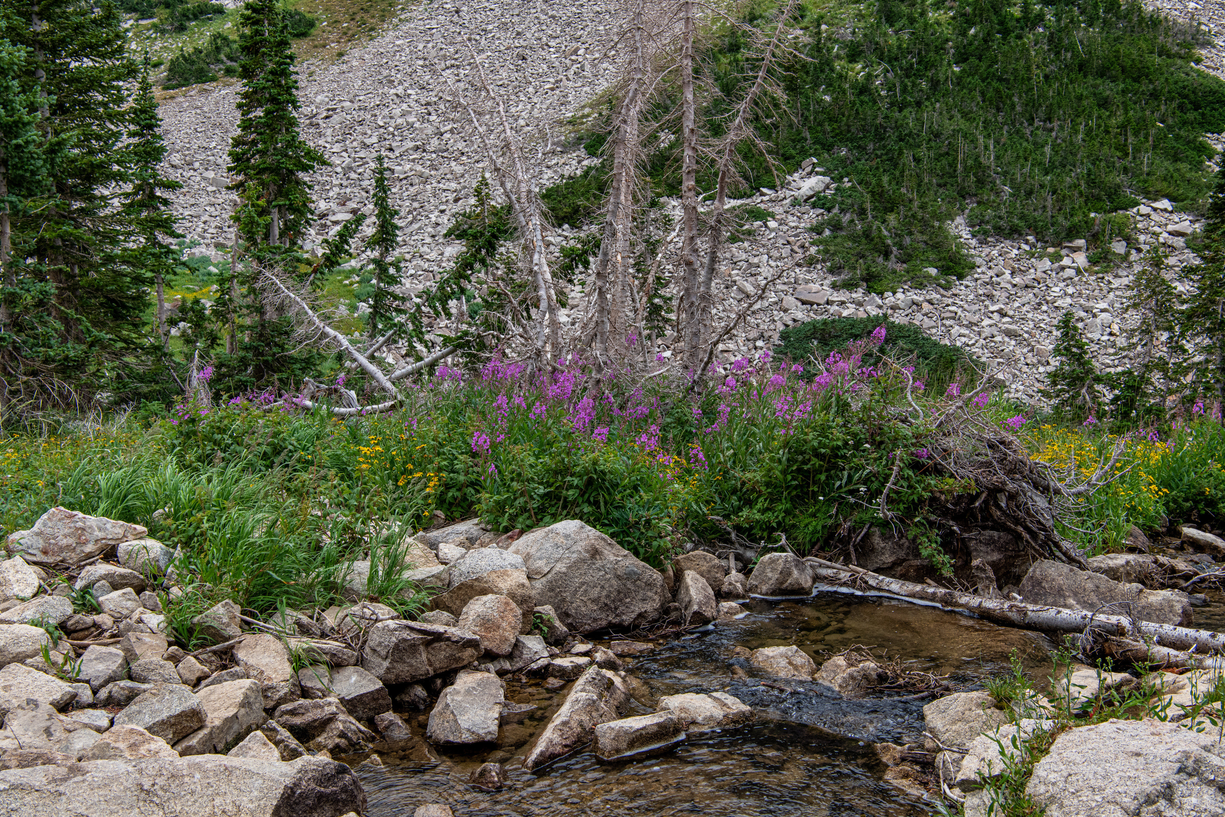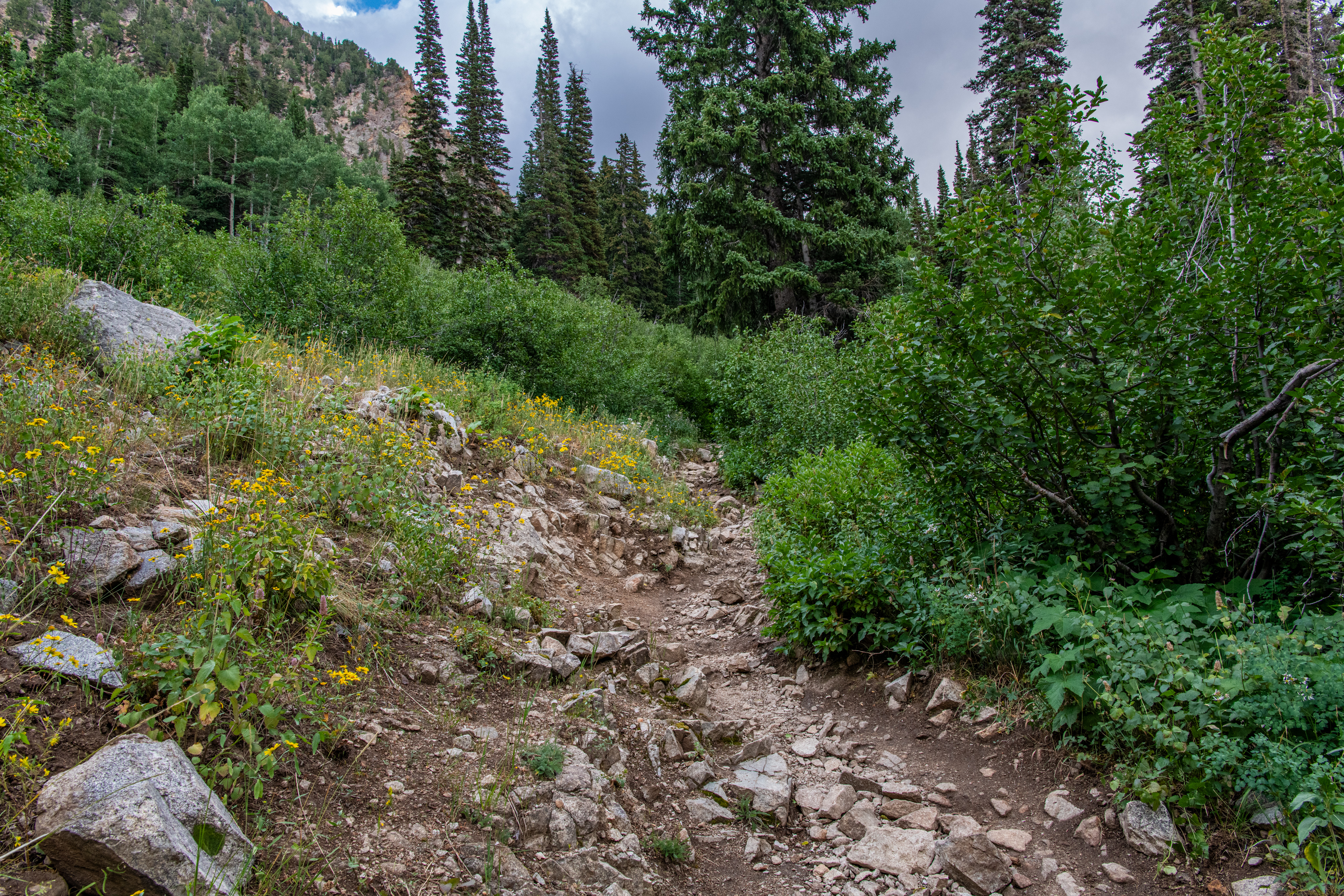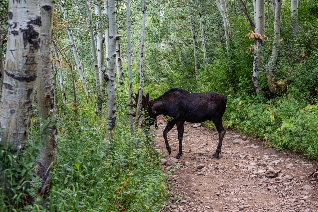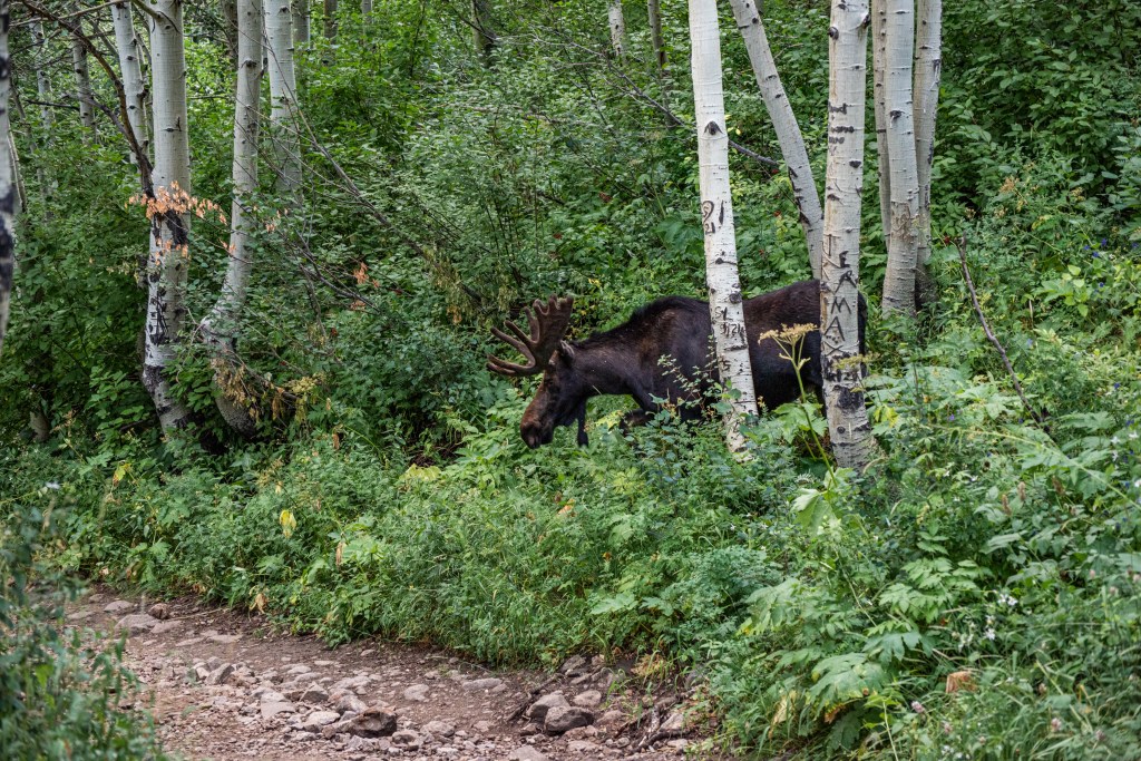 Red Pine Lake is a beautiful hard trail up Little Cottonwood Canyon. There are definitely some steep rocky sections to get up & some water crossings. Wildflowers are still hanging around a bit. We saw a moose, and lots of chipmunks & squirrels.