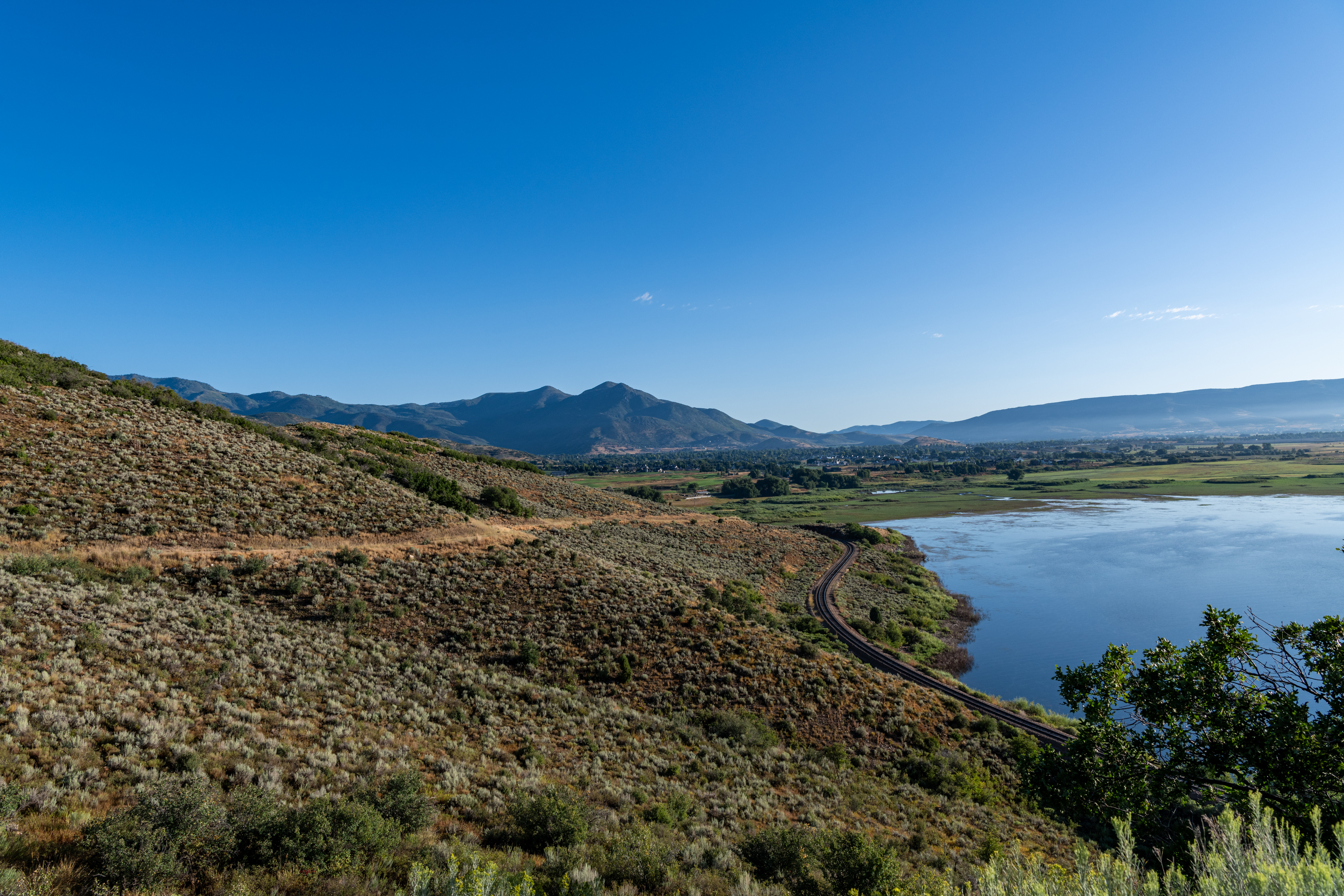 Deer Creek Trail is an easy trail in Heber Valley. We accessed it from Stringtown Road. There is not much shade, so glad we did this early morning. We saw tons of hawks & a crane! We went about 5 miles on it, it is longer, though! 🙂