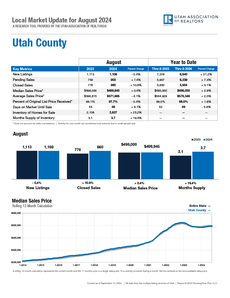 Here are the latest stats for Utah County, days on market have gone down a little bit, and inventory has gone UP a bit. Will be interesting to see what happens with interest rates this month 🙂