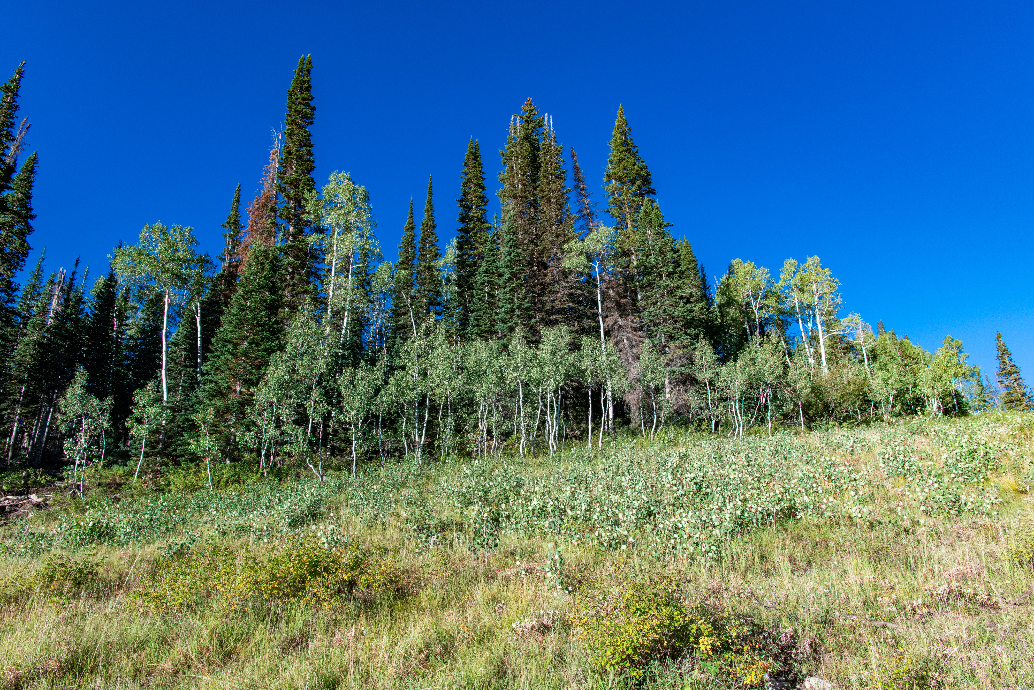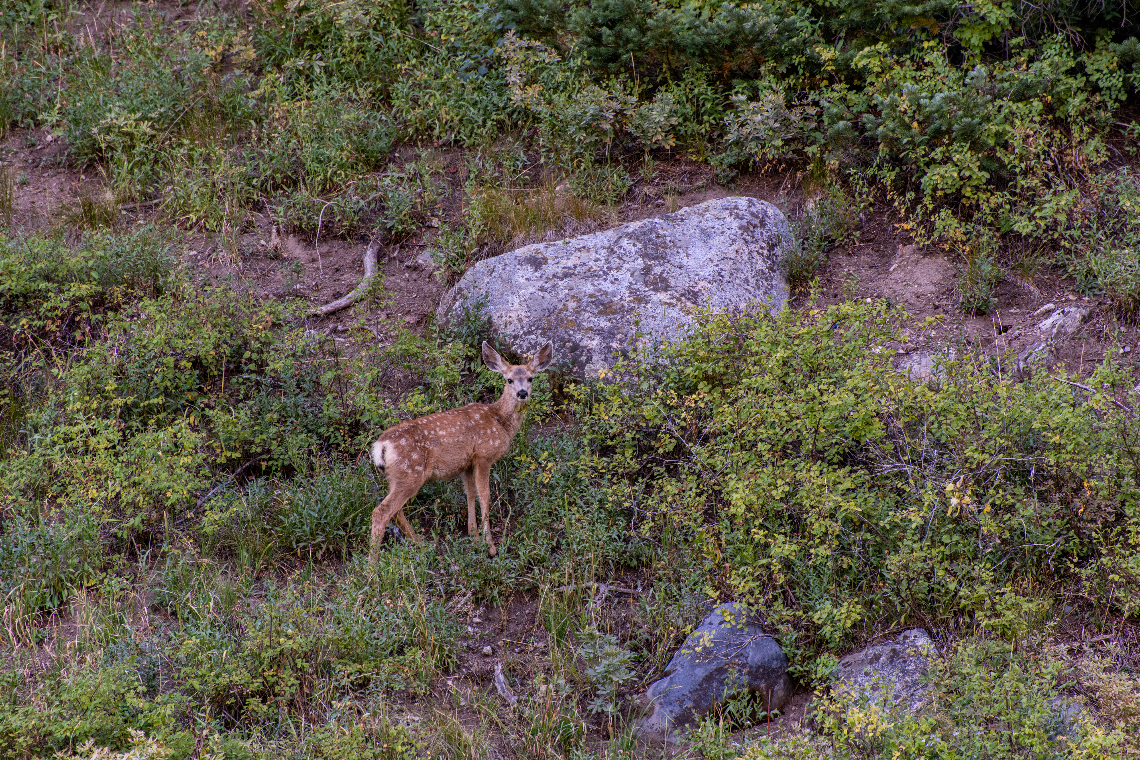 Lake Solitude via Raptor Road & Lookout Cutoff is a moderate hike by Snowbird. Part of it is paved, there are some steep parts. It tends to be less crowded, and we often see wildlife. Today we saw hawks & some deer, including a tiny baby deer, too cute. We tracked this at 4.5 miles.