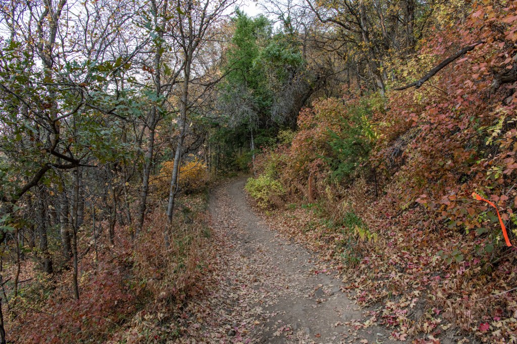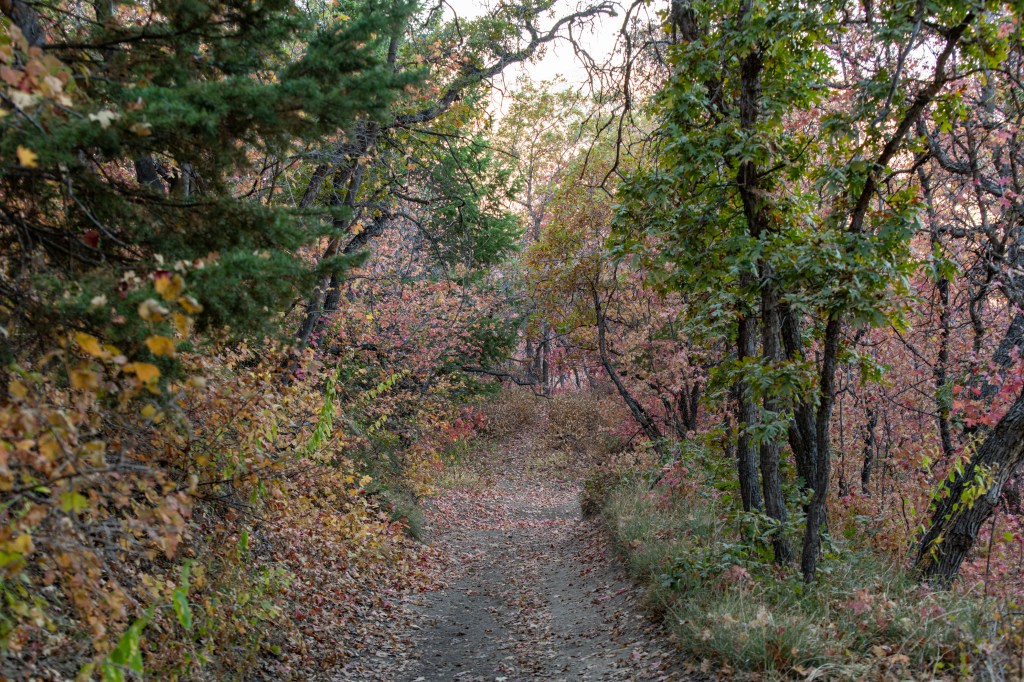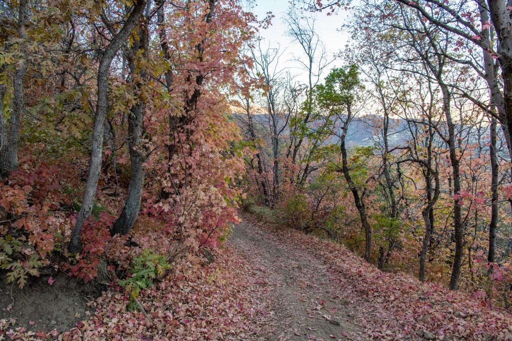 Woodland Hills Switchbacks is a lovely quick hike. We enjoy this one in the fall, the colors make it like walking through a postcard! We saw turkeys on the trail. It is steep, but has lovely views. We tracked this at just over 3 miles total.