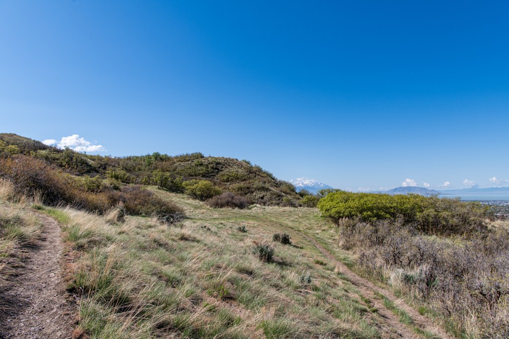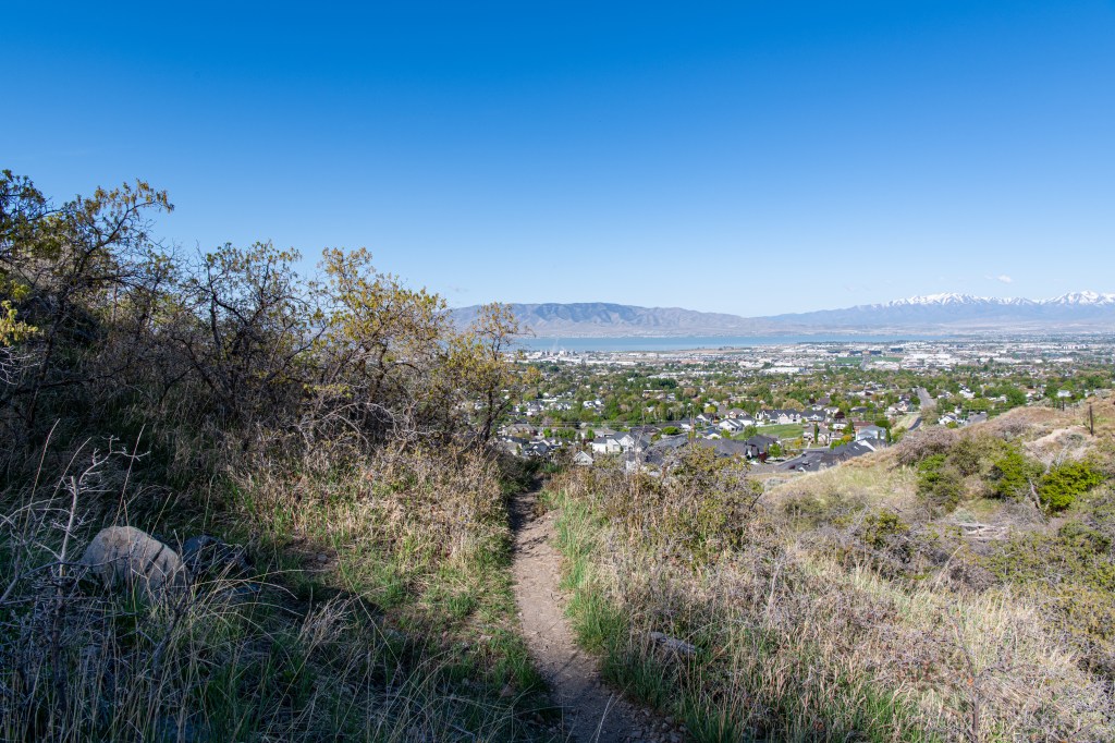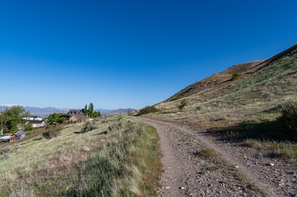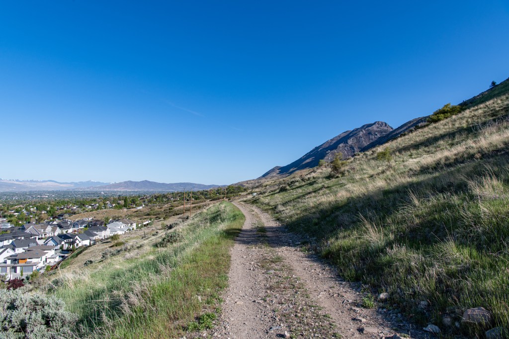 The Aqueduct Trail/Bonneville Shoreline Trail is a nice, easy city hike in Lindon. There are nice views, some steeper areas, but not too bad. We saw a lot of birds & a little weasel. The trail is quite exposed & can get hot quickly. We tracked this at just about 5 miles, going past the Battle Creek Trailhead and back.