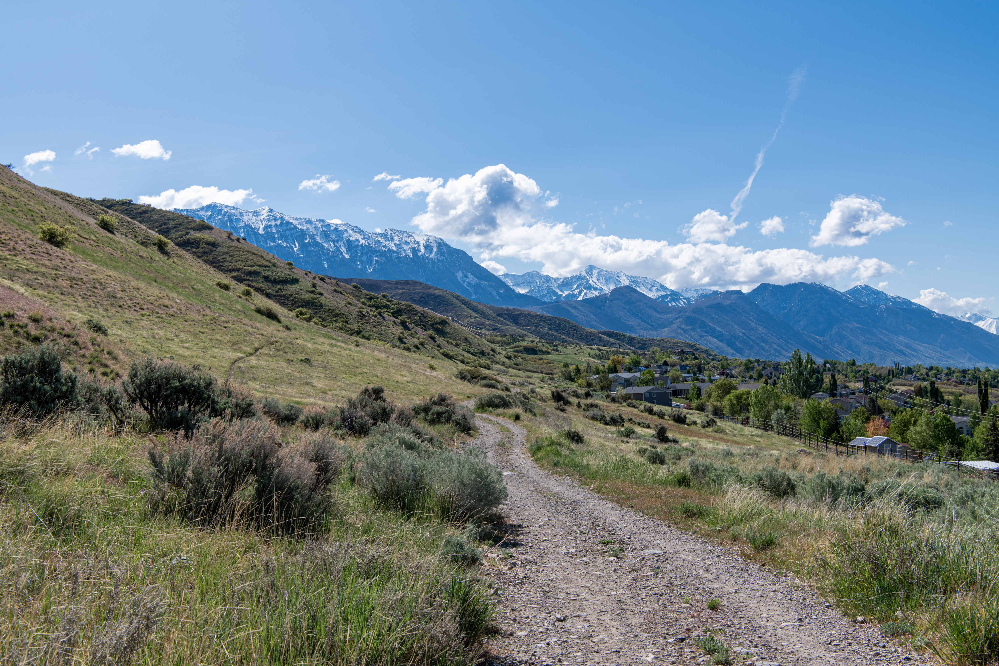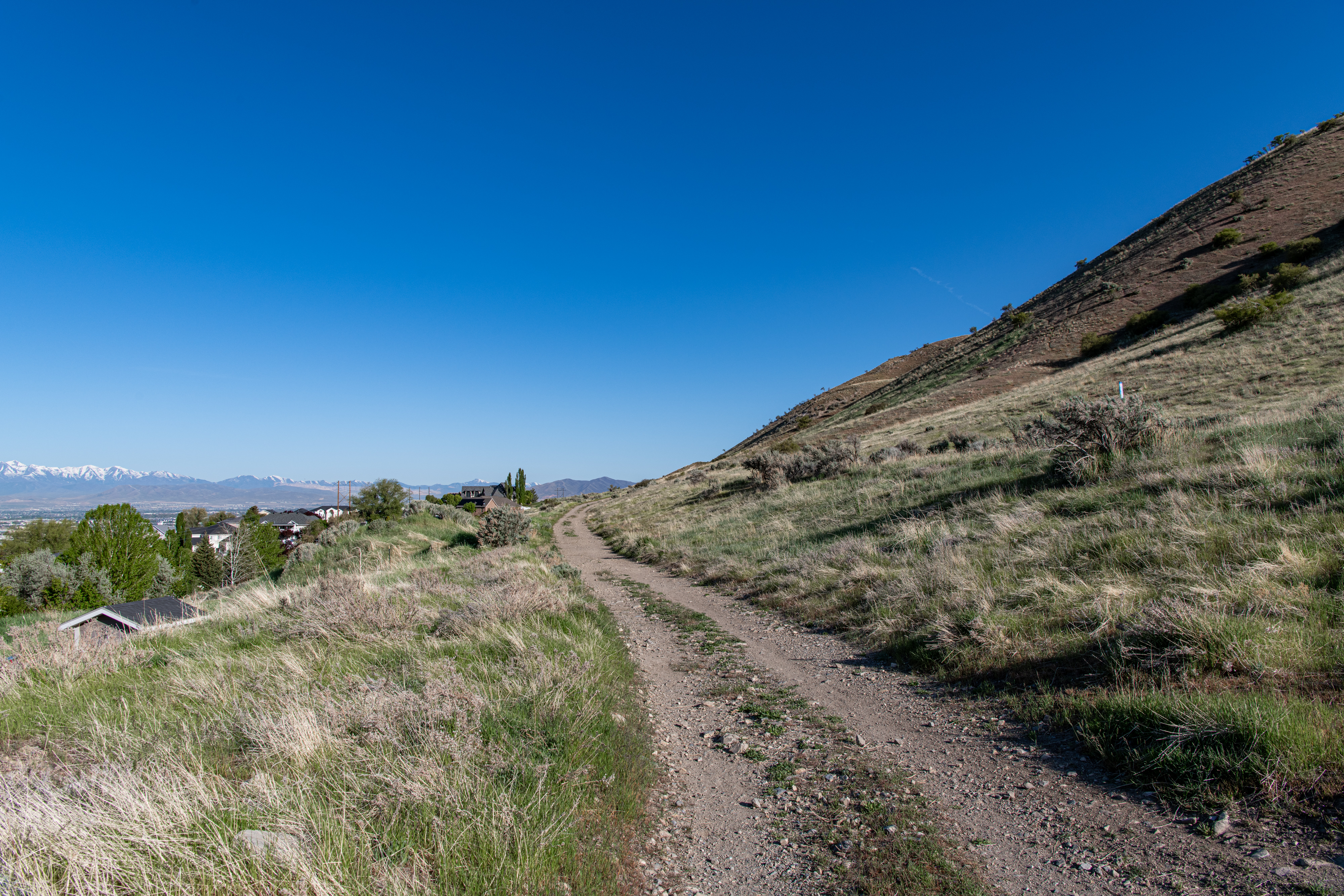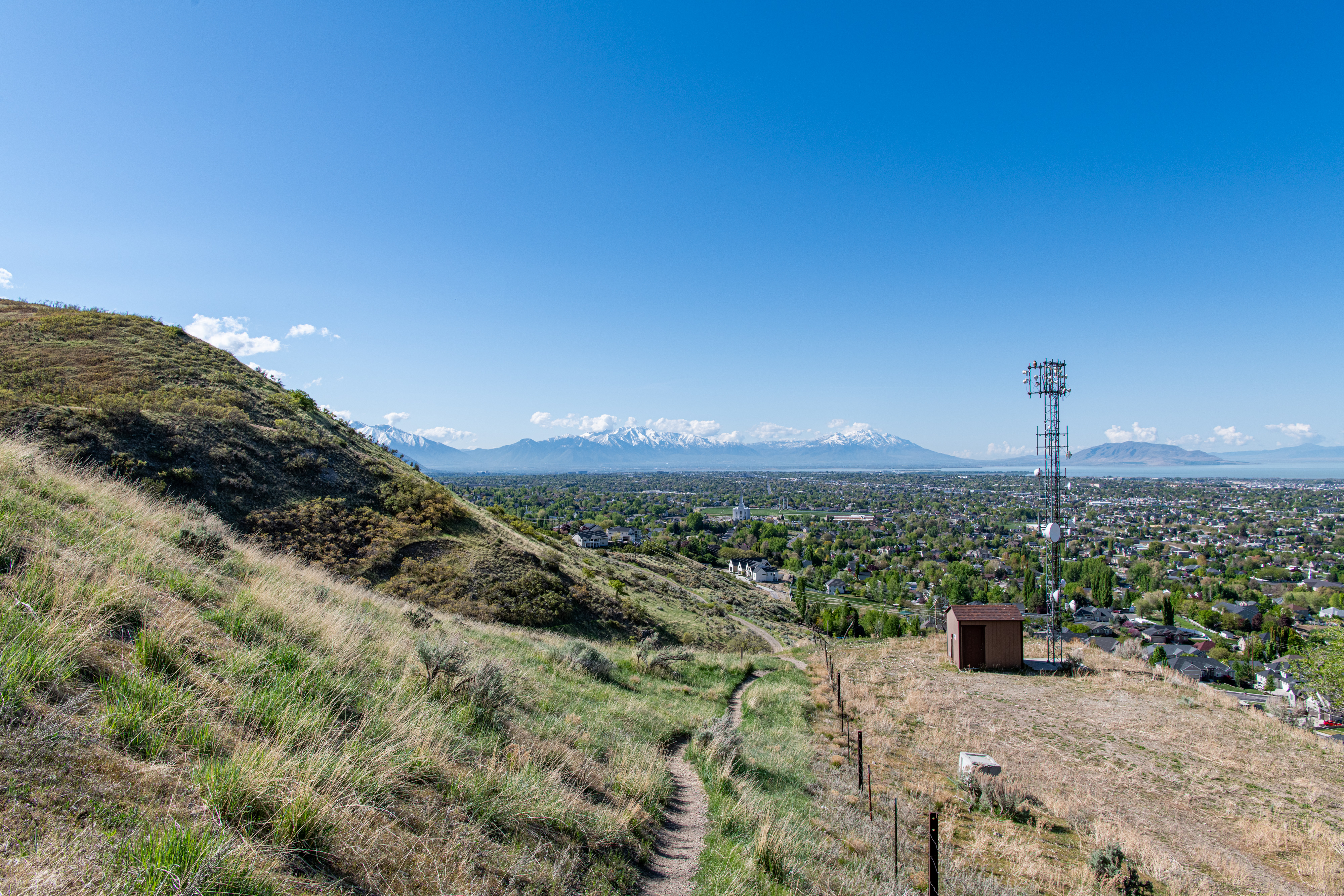 The Aqueduct Trail/Bonneville Shoreline Trail is a nice, easy city hike in Lindon. There are nice views, some steeper areas, but not too bad. We saw a lot of birds & a little weasel. The trail is quite exposed & can get hot quickly. We tracked this at just about 5 miles, going past the Battle Creek Trailhead and back.