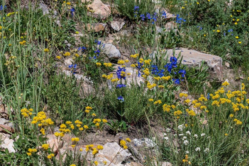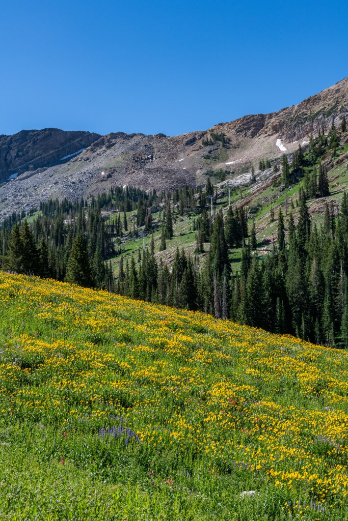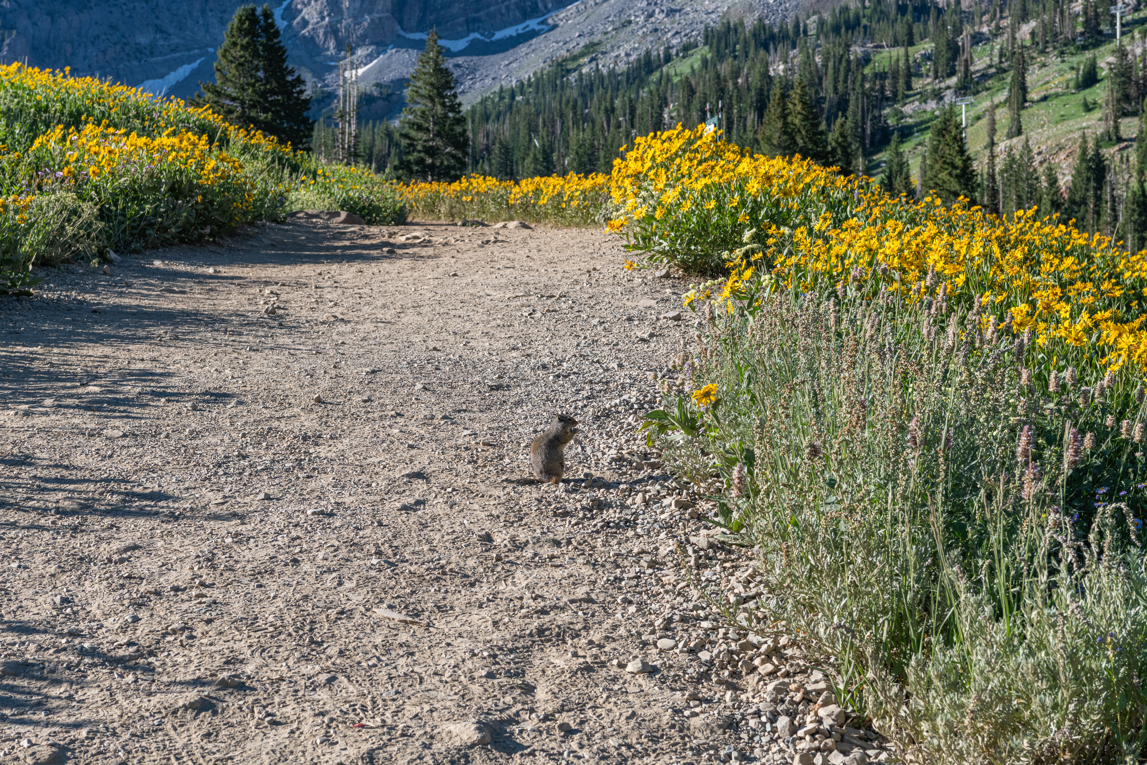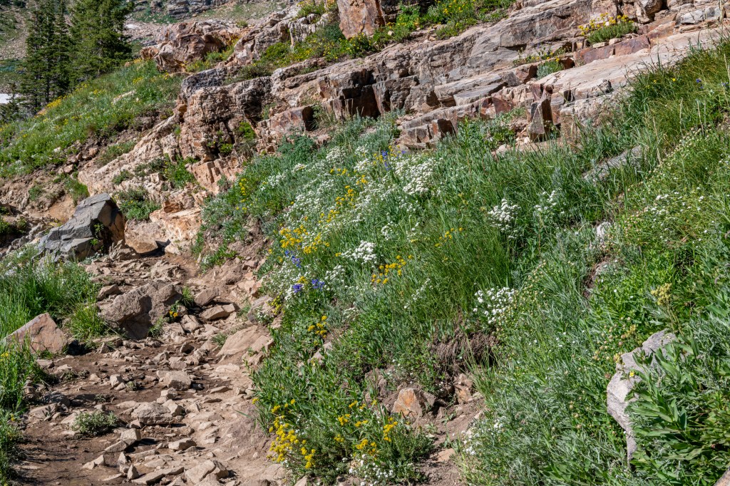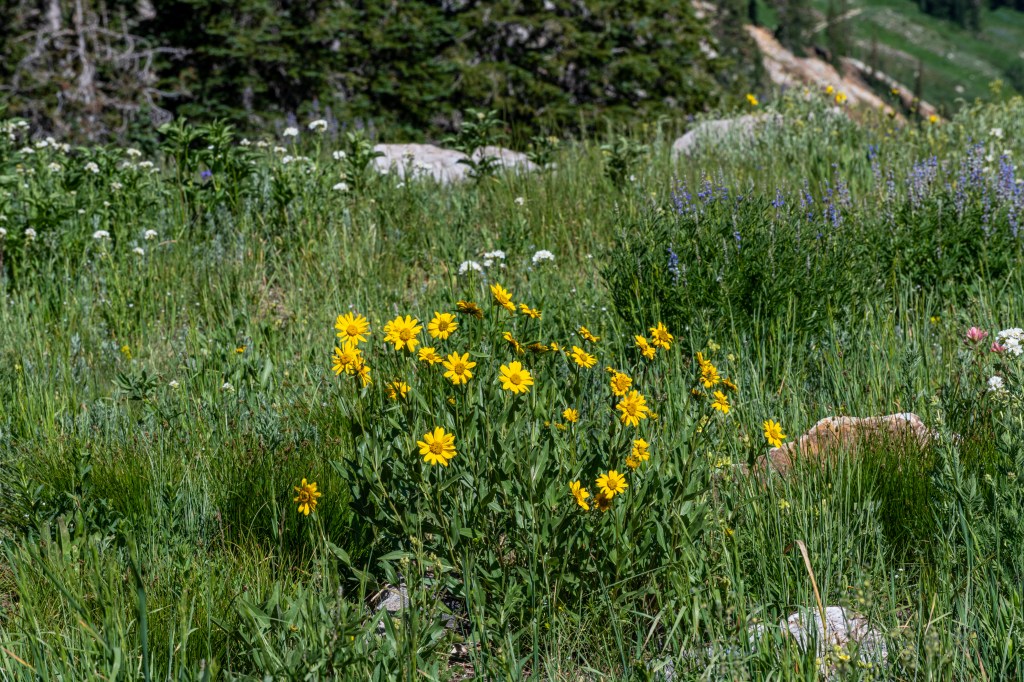 Albion Basin to Cecret Lake is a popular trail at Alta. So many wildflowers. It is so beautiful right now. We saw hundreds of tiger salamanders in the lake, so cool. Also saw lots of potguts, squirrels, birds, chipmunks & hummingbirds. It is pretty moderate, there are some steeper areas to get to the lake. There is a detour around construction. We tracked this at just over 6 miles, we did go all around the lake & explore.