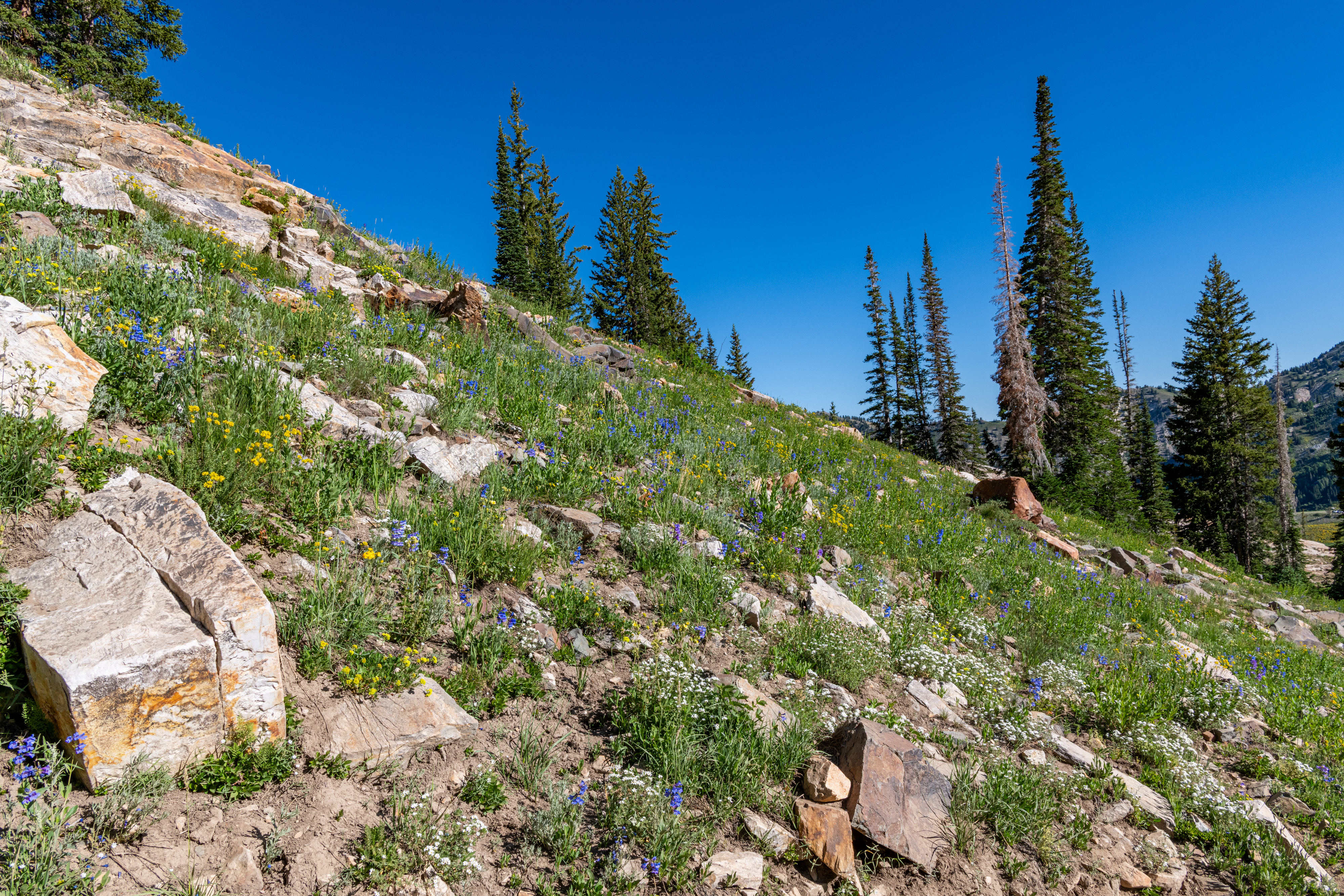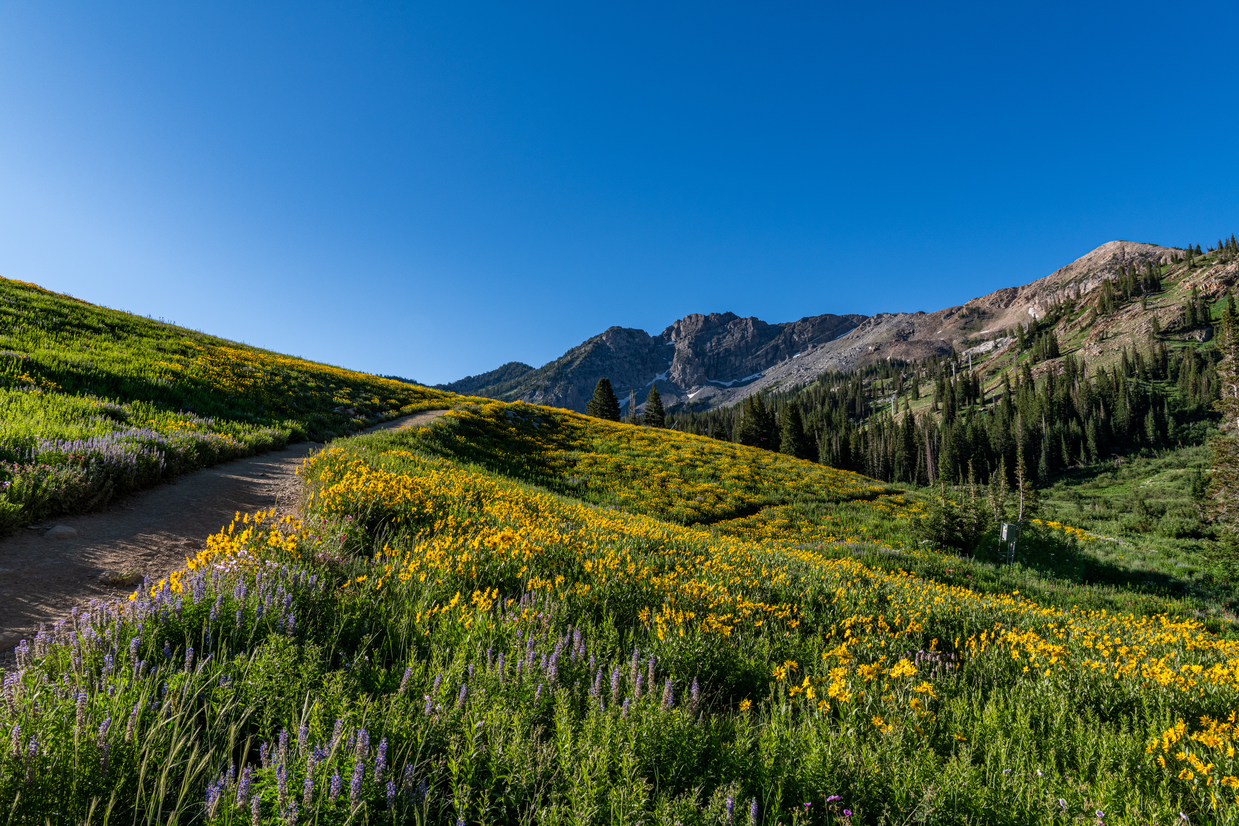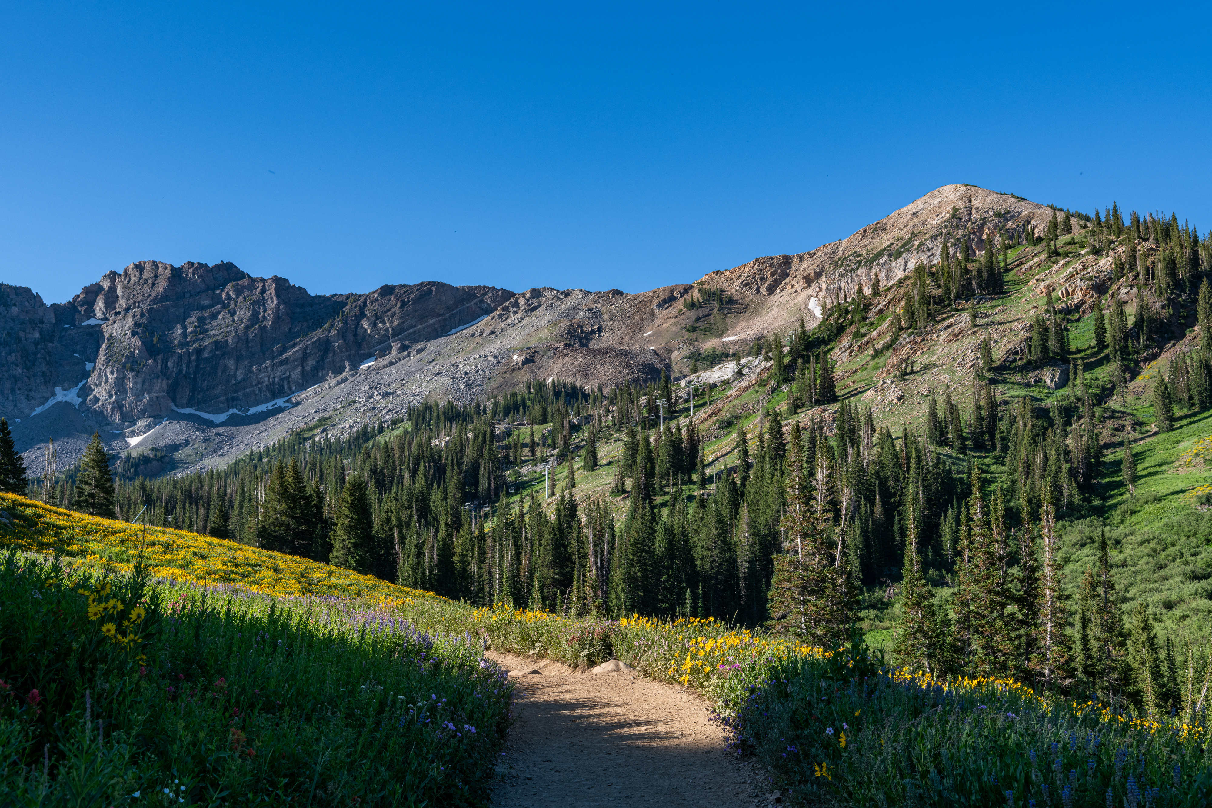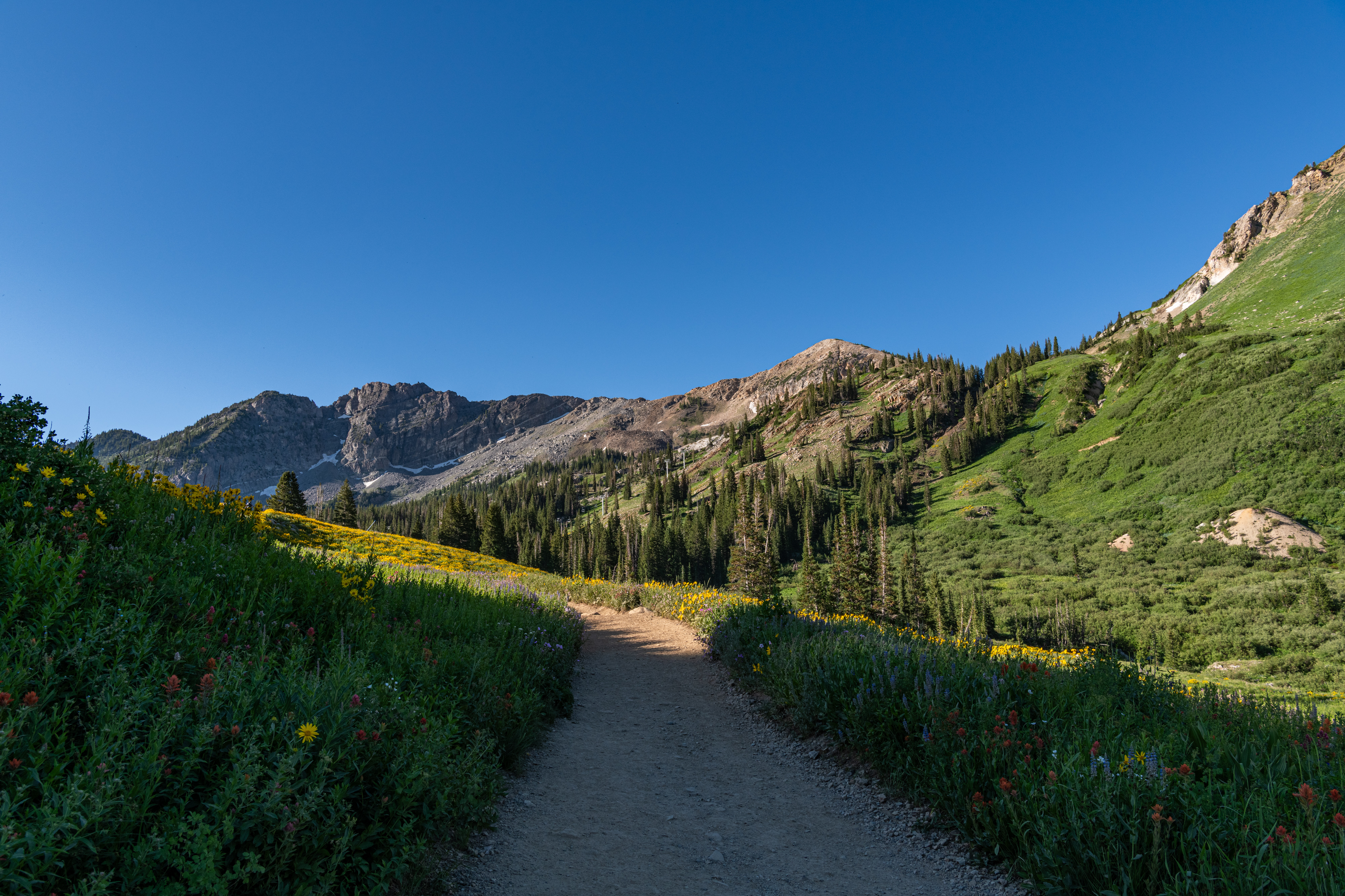 Albion Basin to Cecret Lake is a popular trail at Alta. So many wildflowers. It is so beautiful right now. We saw hundreds of tiger salamanders in the lake, so cool. Also saw lots of potguts, squirrels, birds, chipmunks & hummingbirds. It is pretty moderate, there are some steeper areas to get to the lake. There is a detour around construction. We tracked this at just over 6 miles, we did go all around the lake & explore.