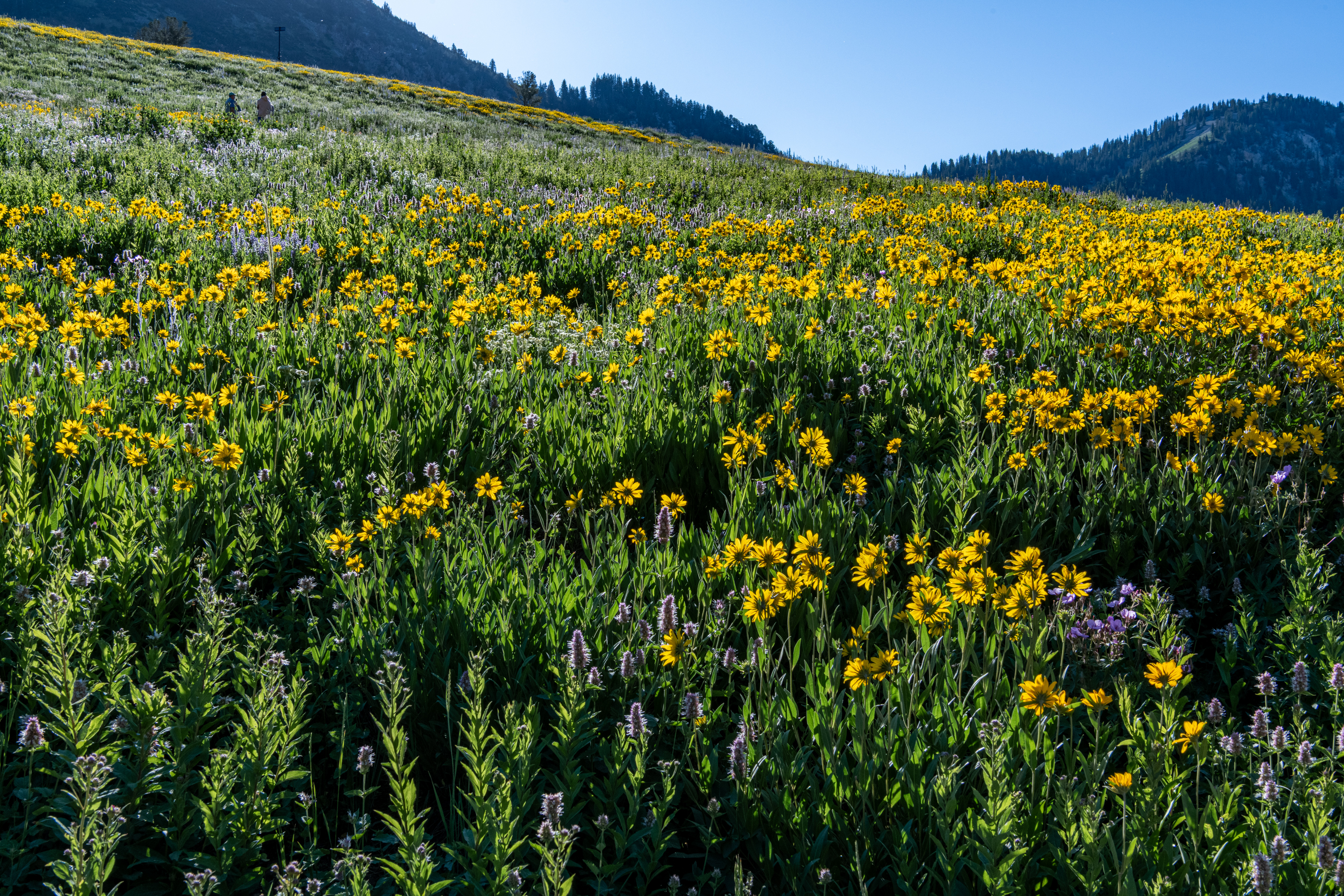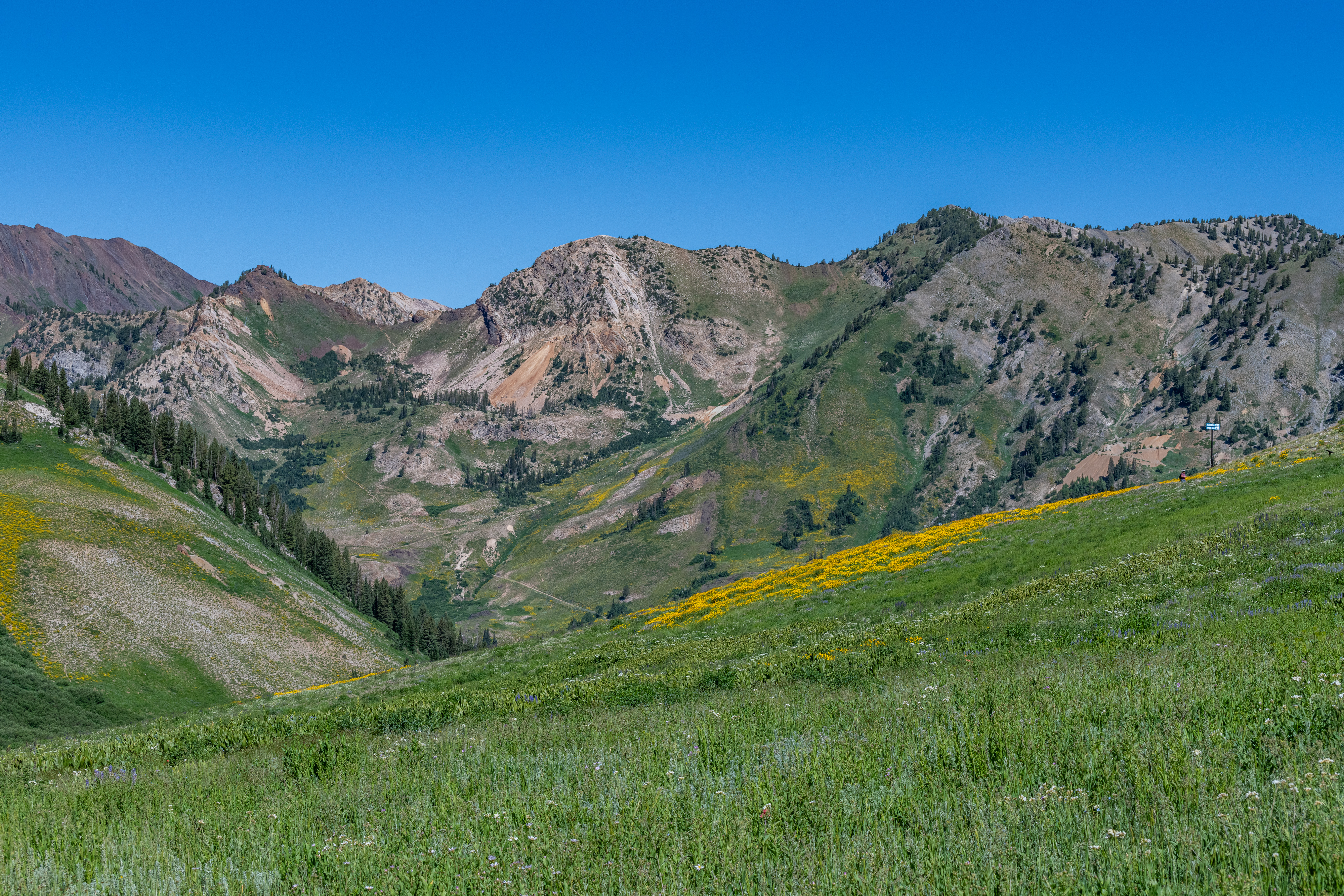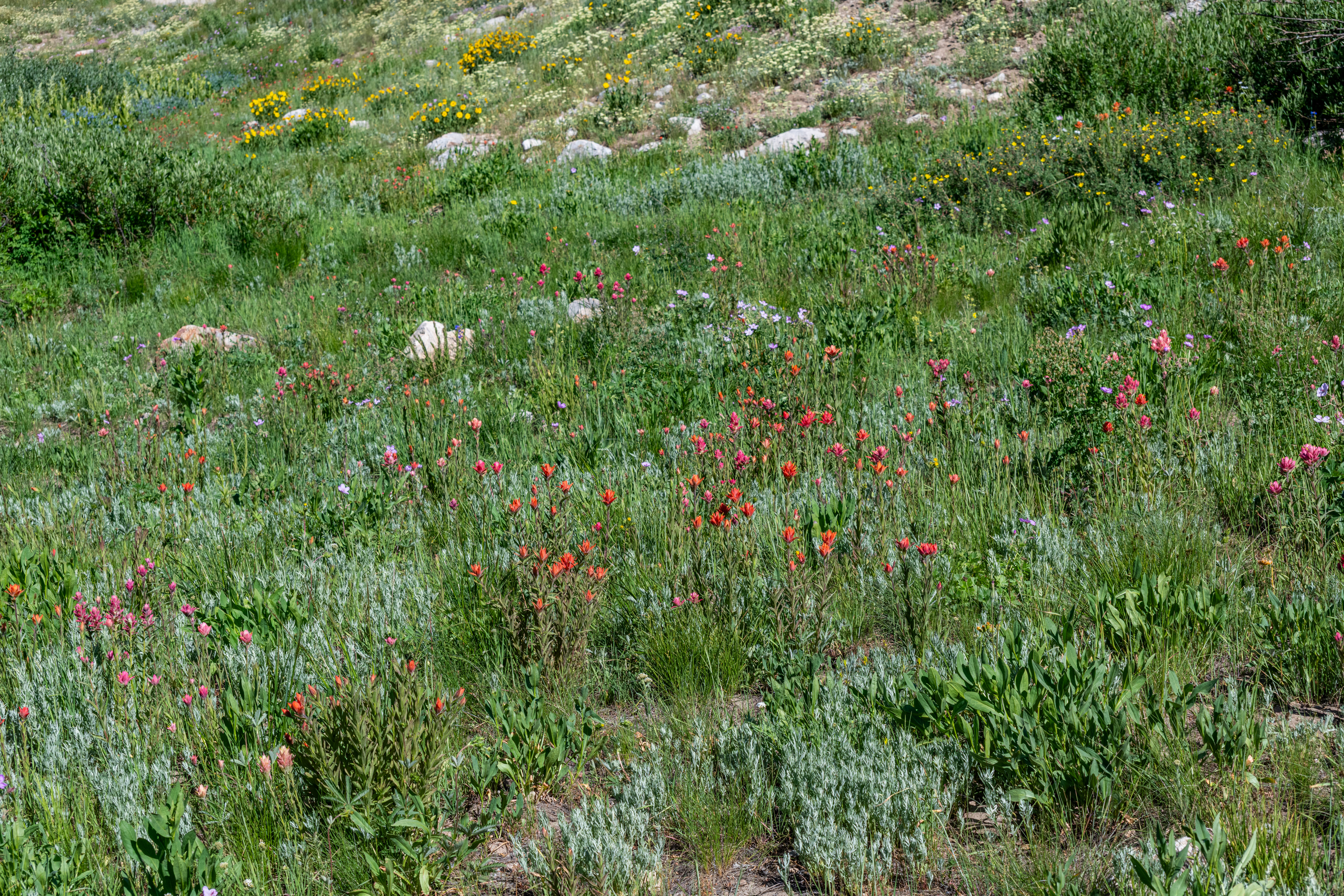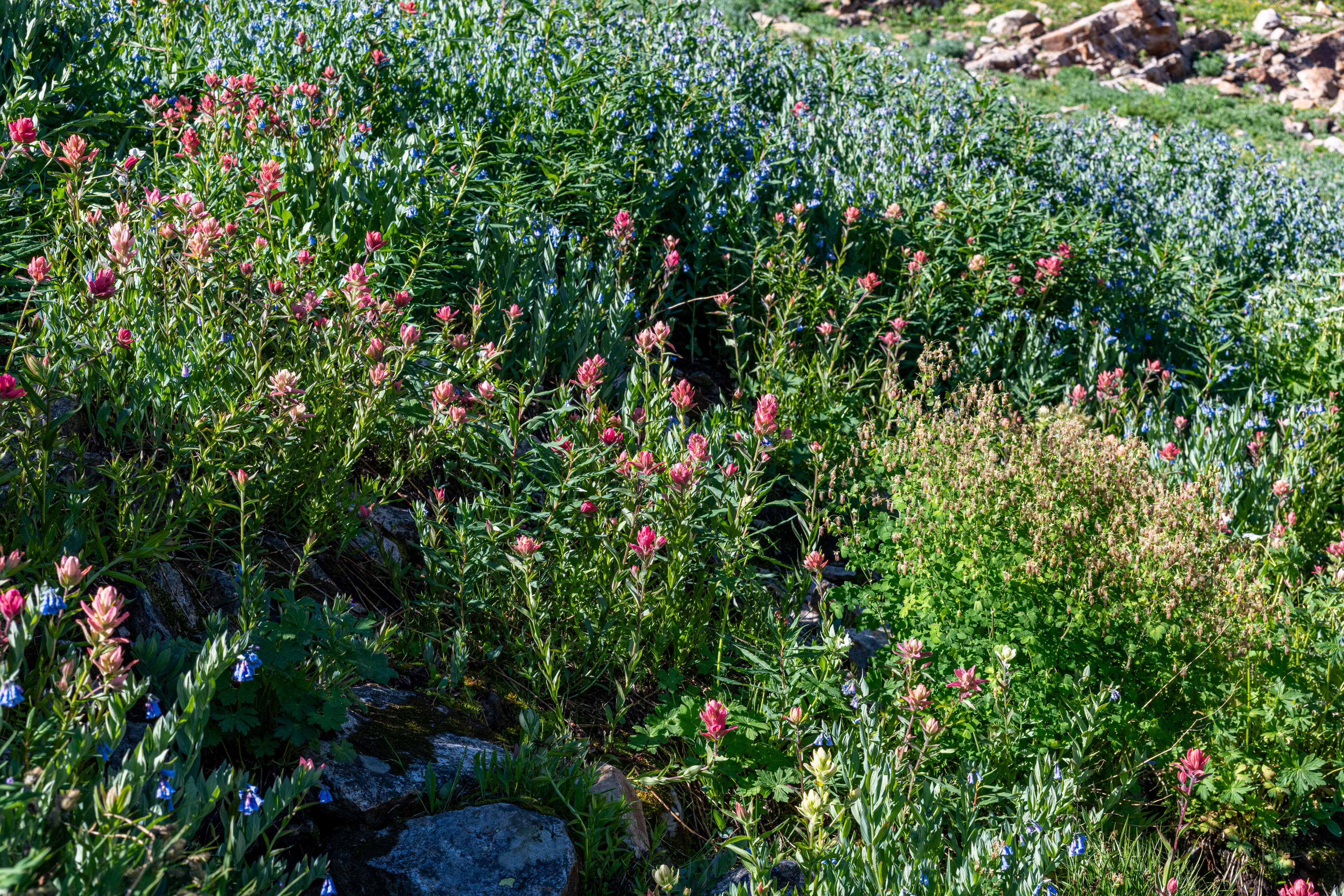 Albion Basin to Cecret Lake is a popular trail at Alta. So many wildflowers. It is so beautiful right now. We saw hundreds of tiger salamanders in the lake, so cool. Also saw lots of potguts, squirrels, birds, chipmunks & hummingbirds. It is pretty moderate, there are some steeper areas to get to the lake. There is a detour around construction. We tracked this at just over 6 miles, we did go all around the lake & explore.