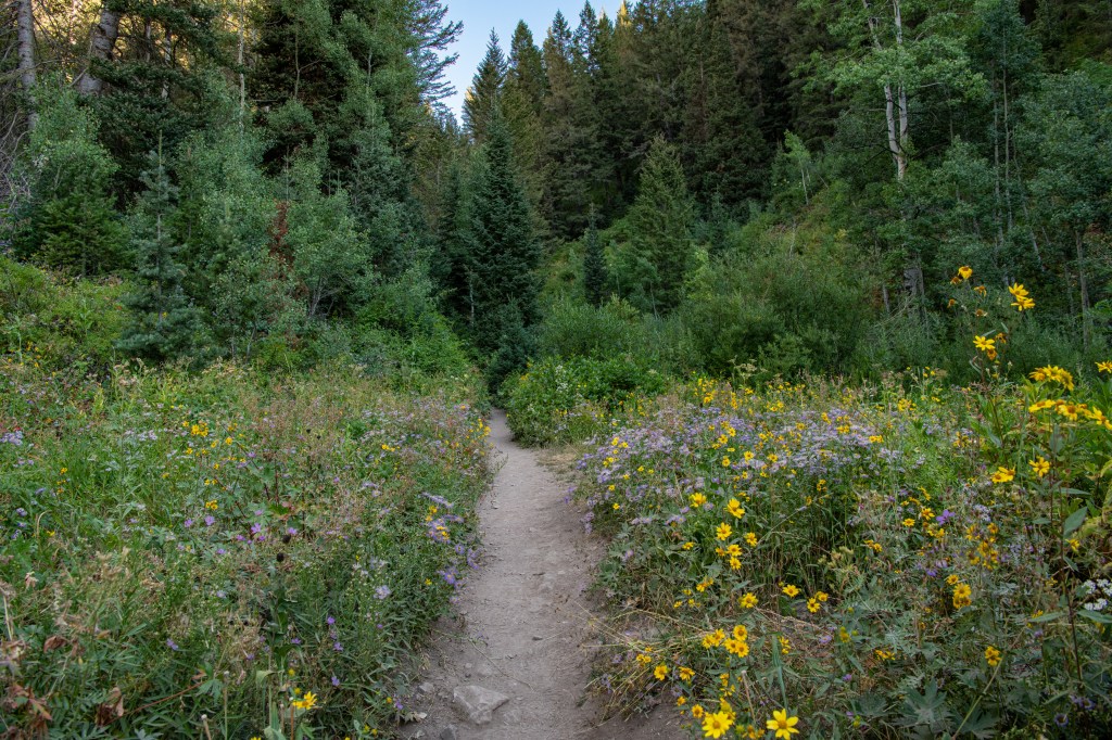 Circle All Peak Trail is a hard, steep hike up Big Cottonwood Canyon. It follows a creek part of the way, which is pretty. We saw 3 moose, so that was neat! The views are pretty at the top. It is very steep. Some wildflowers are still hanging on. We tracked this at just about 4.5 miles total.