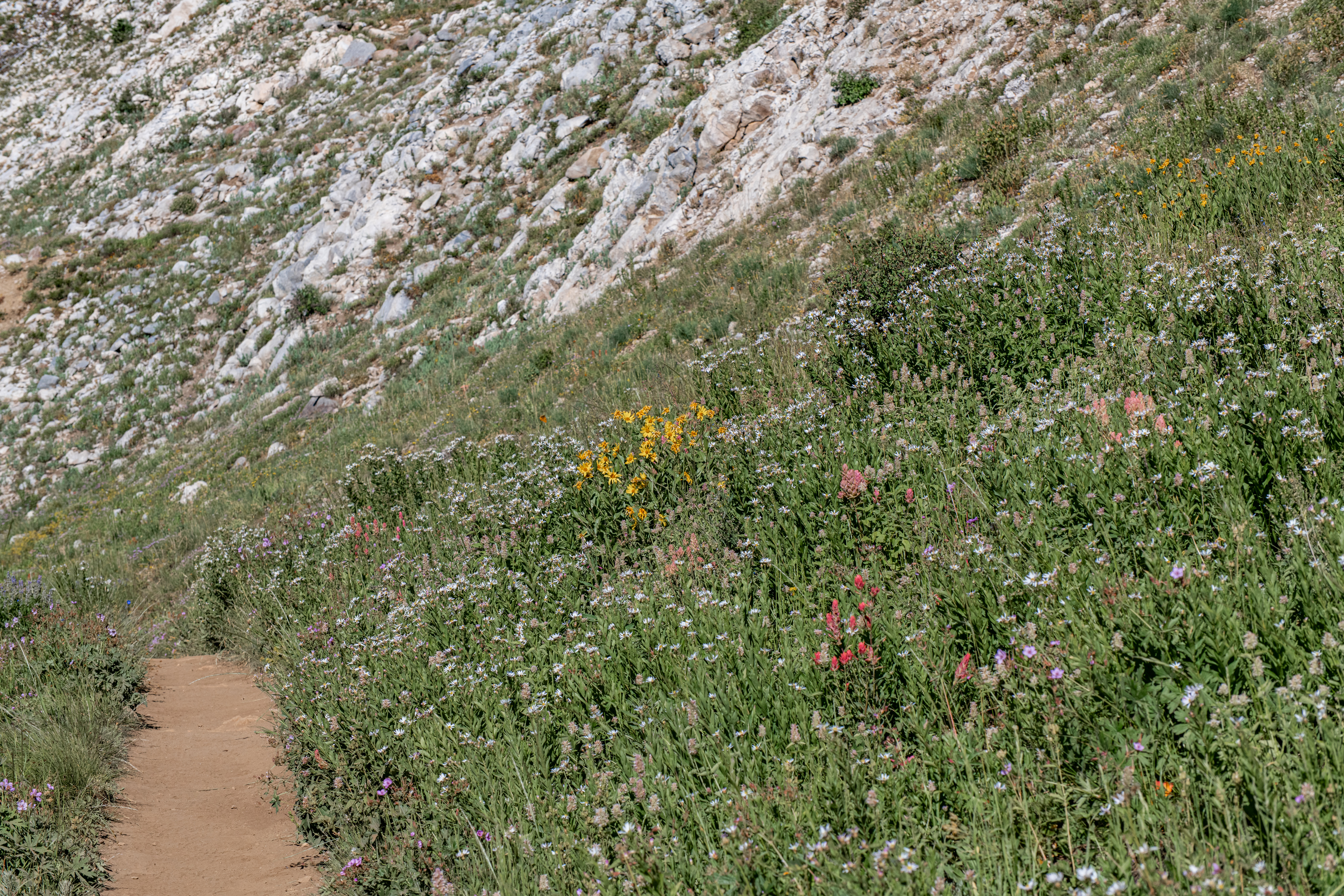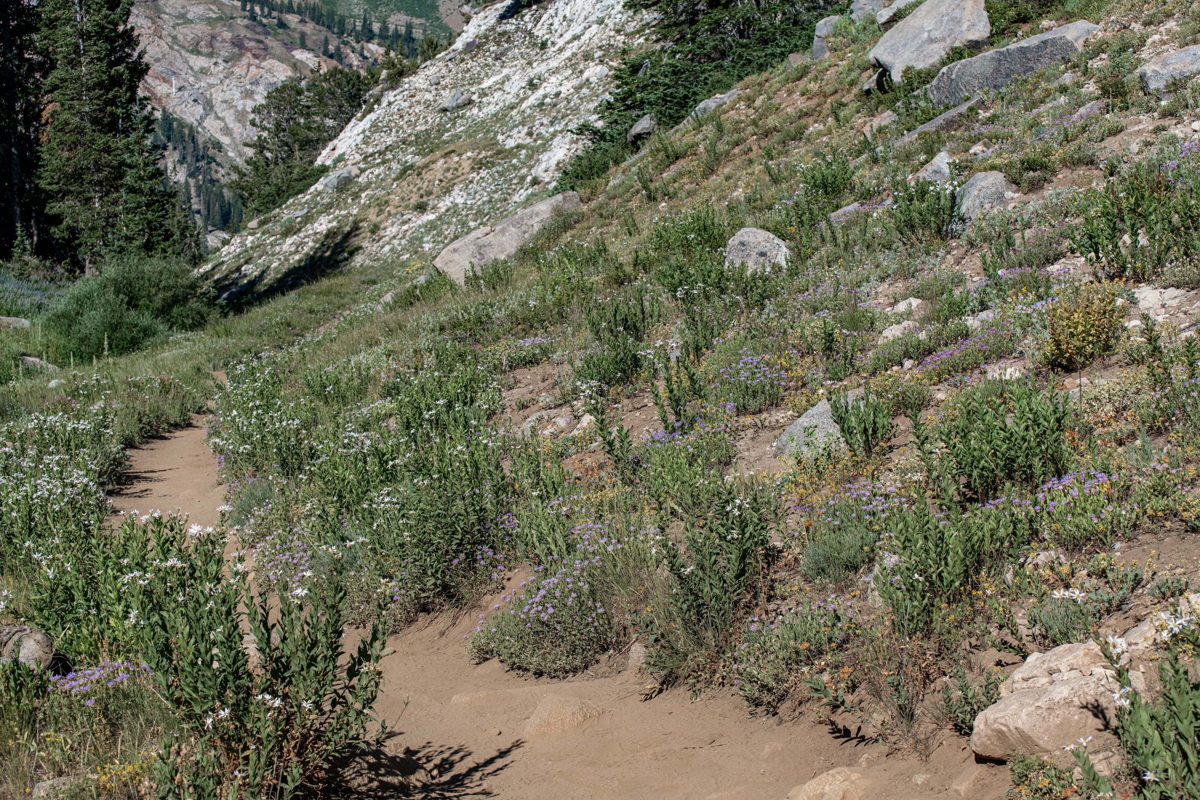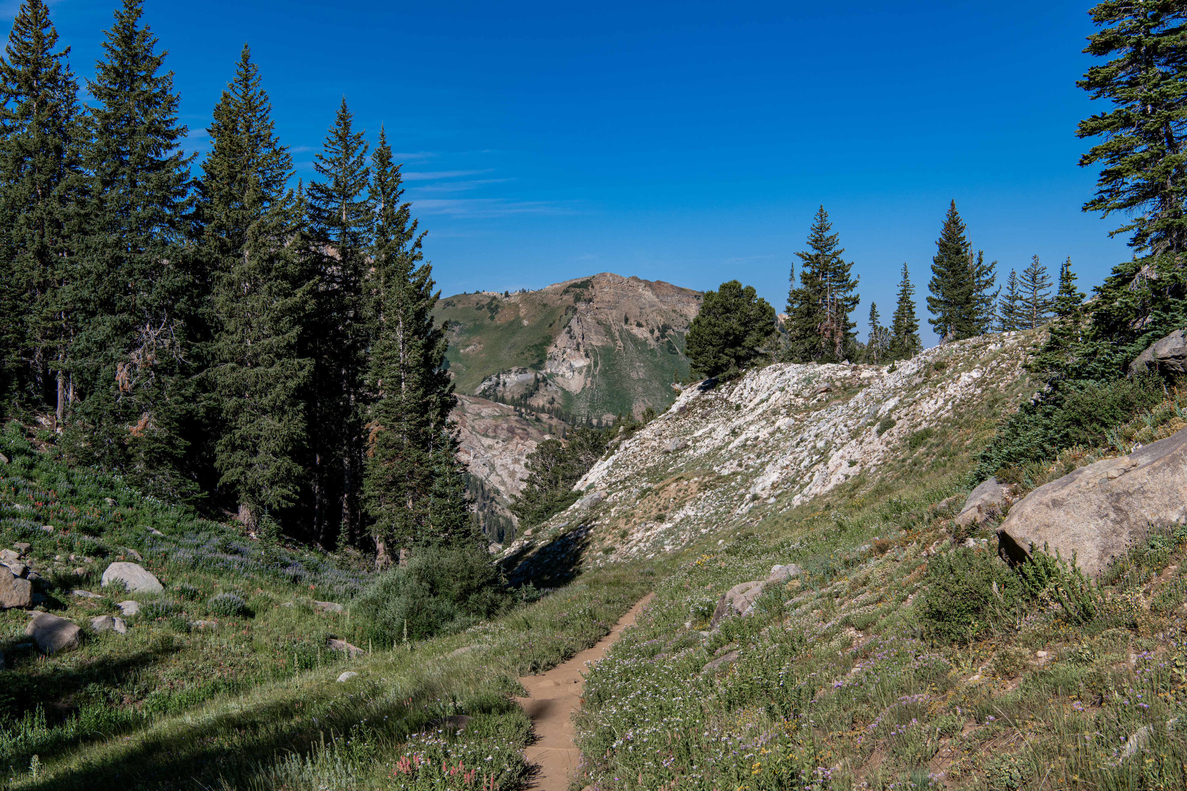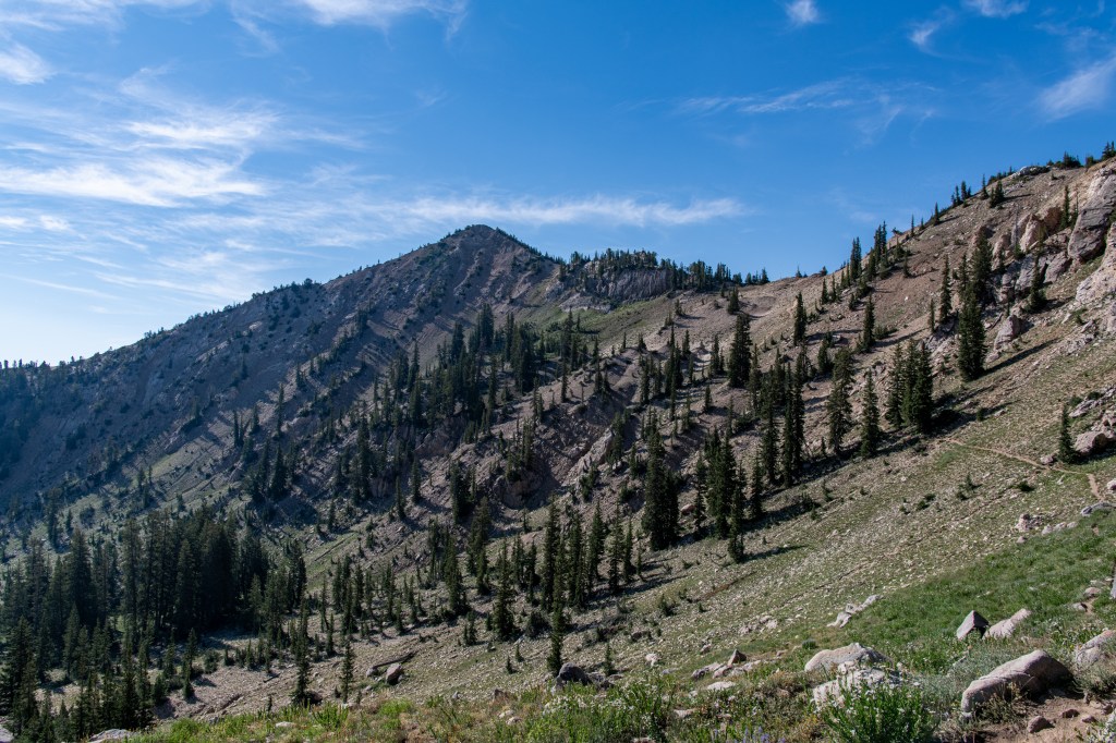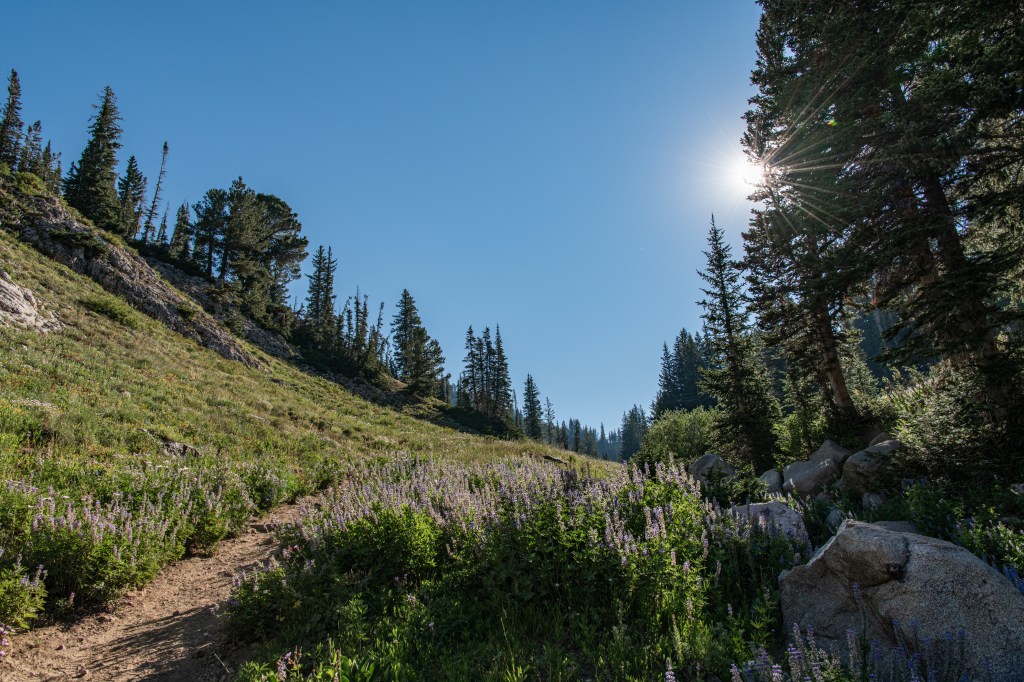 Lake Catherine via Catherine’s Pass is a beautiful trail up Little Cottonwood Canyon. There is a $12/parking fee for the small lot at the trailhead. It fills up quickly, so be aware. You can hike up from Alta, adds on about 2 miles. There are steeper areas. Overall, I’d say it is moderate. There are some wildflowers still, though fading out. We saw deer, potguts & hummingbird. We tracked this at just over 4 miles.