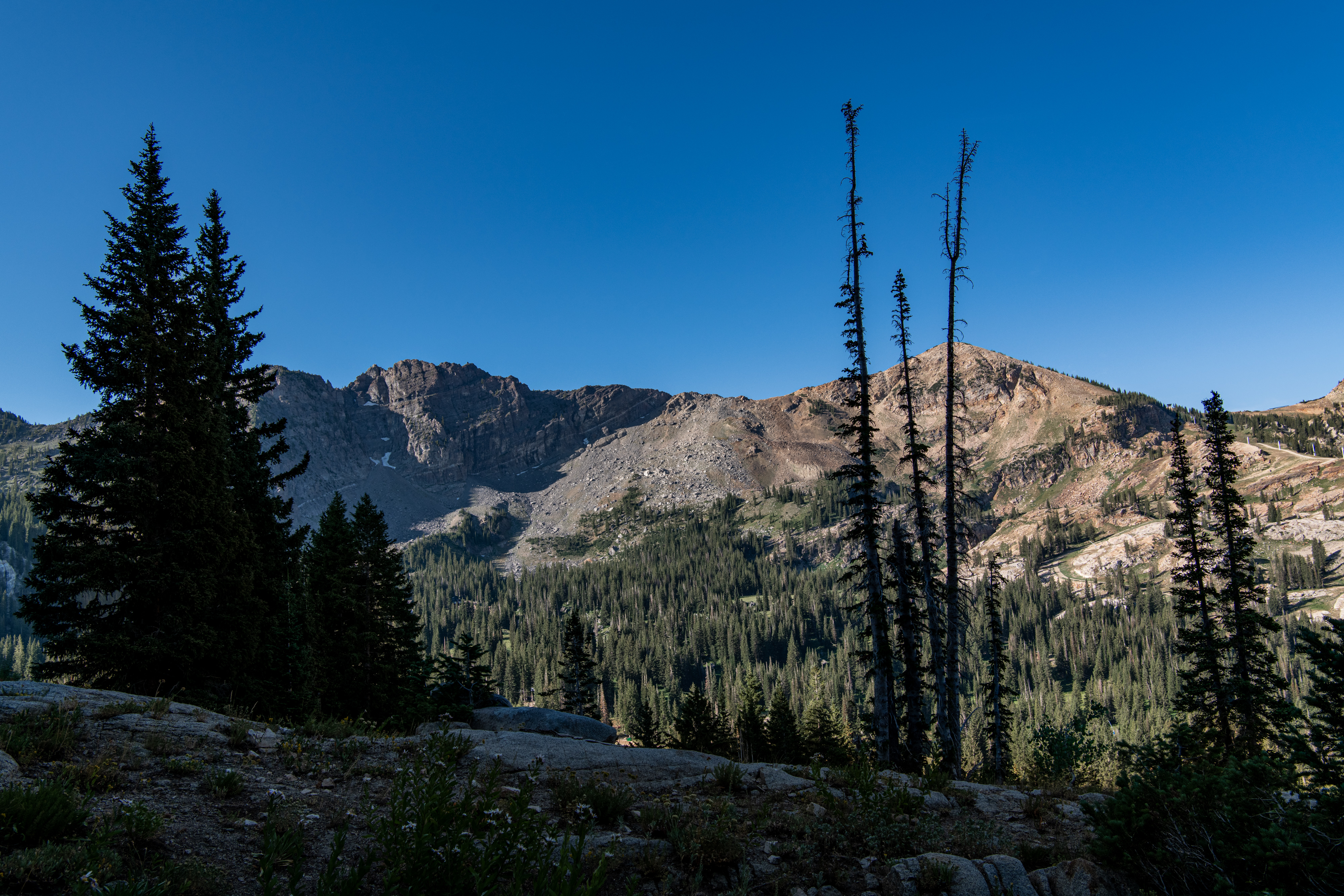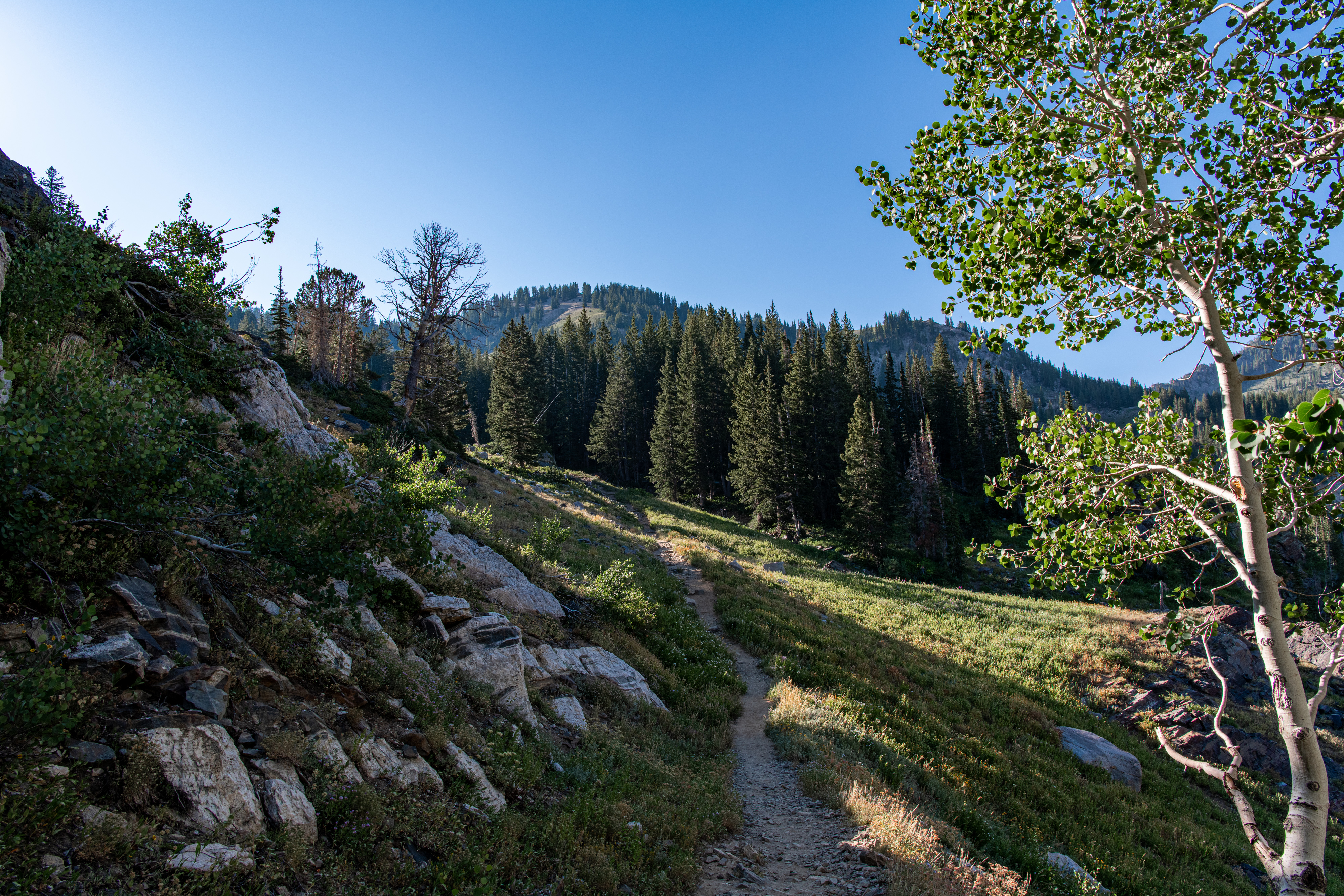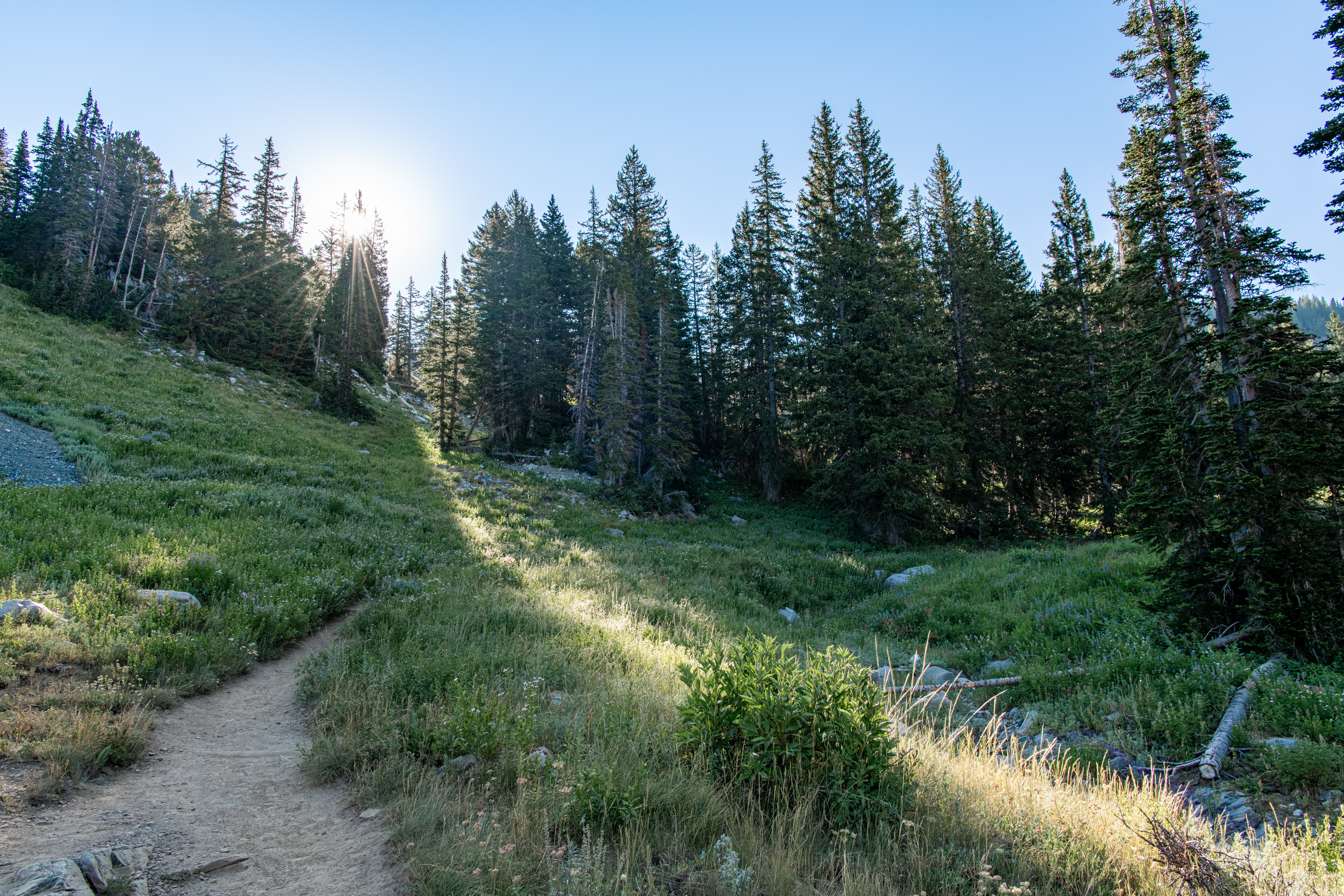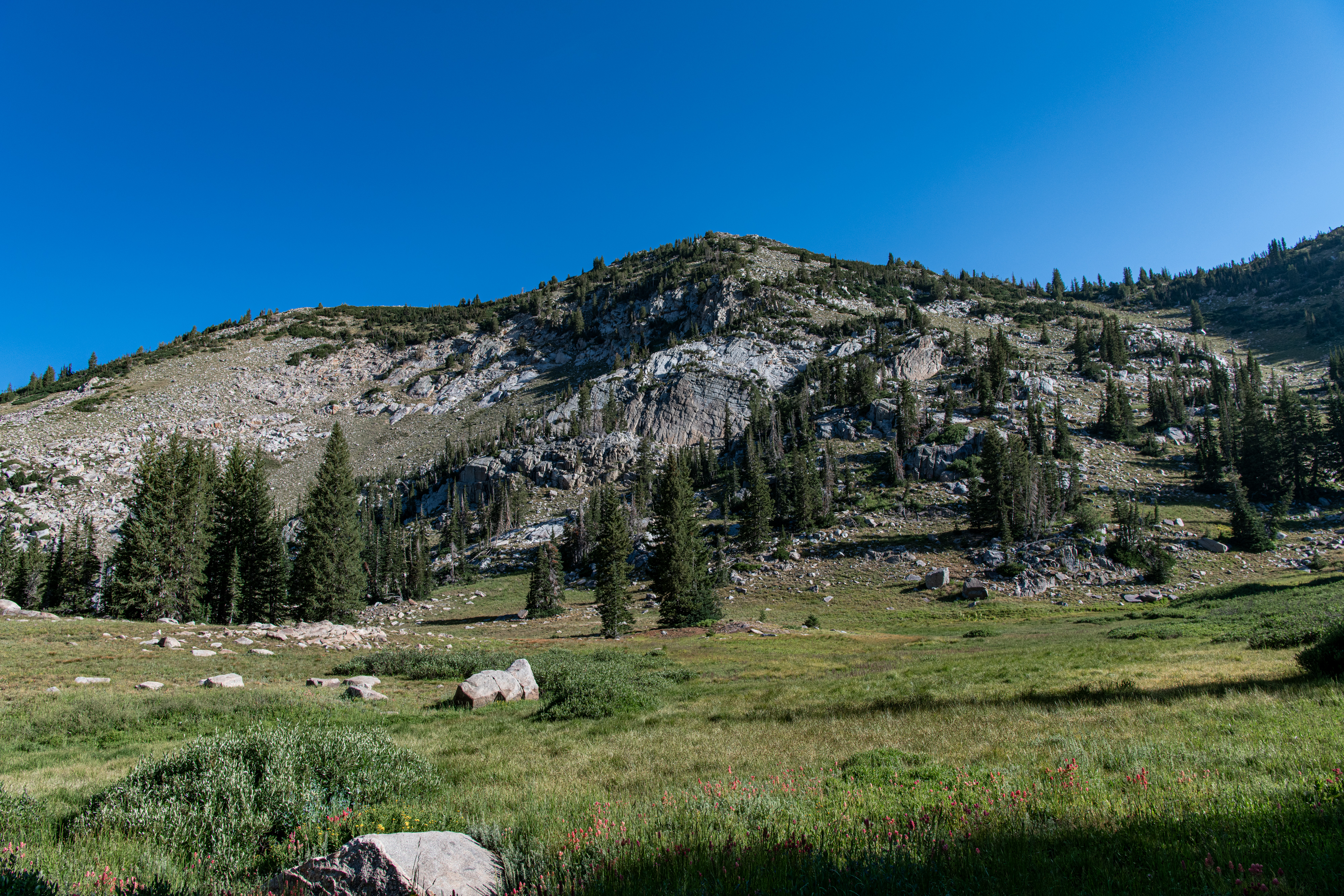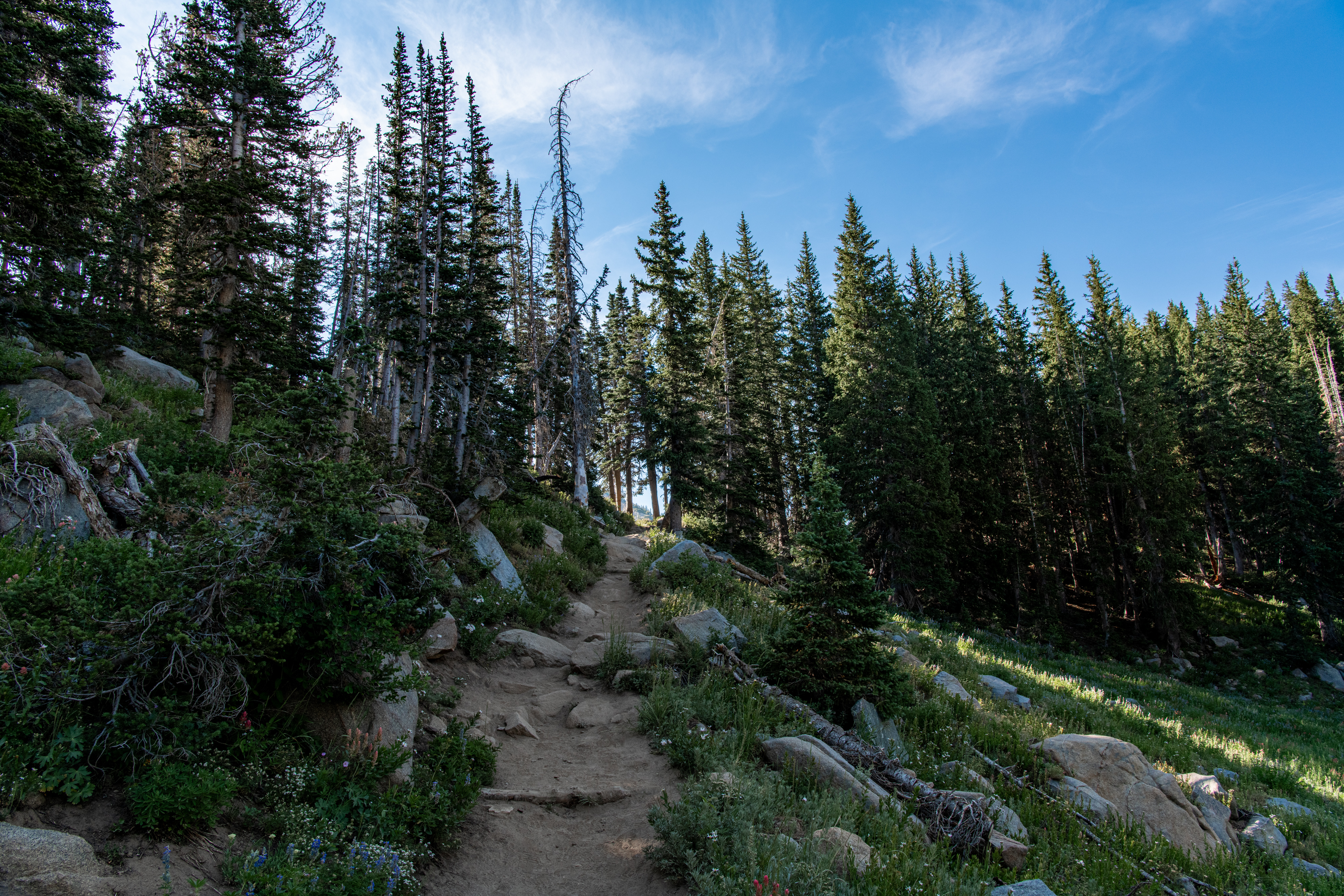 Lake Catherine via Catherine’s Pass is a beautiful trail up Little Cottonwood Canyon. There is a $12/parking fee for the small lot at the trailhead. It fills up quickly, so be aware. You can hike up from Alta, adds on about 2 miles. There are steeper areas. Overall, I’d say it is moderate. There are some wildflowers still, though fading out. We saw deer, potguts & hummingbird. We tracked this at just over 4 miles.
