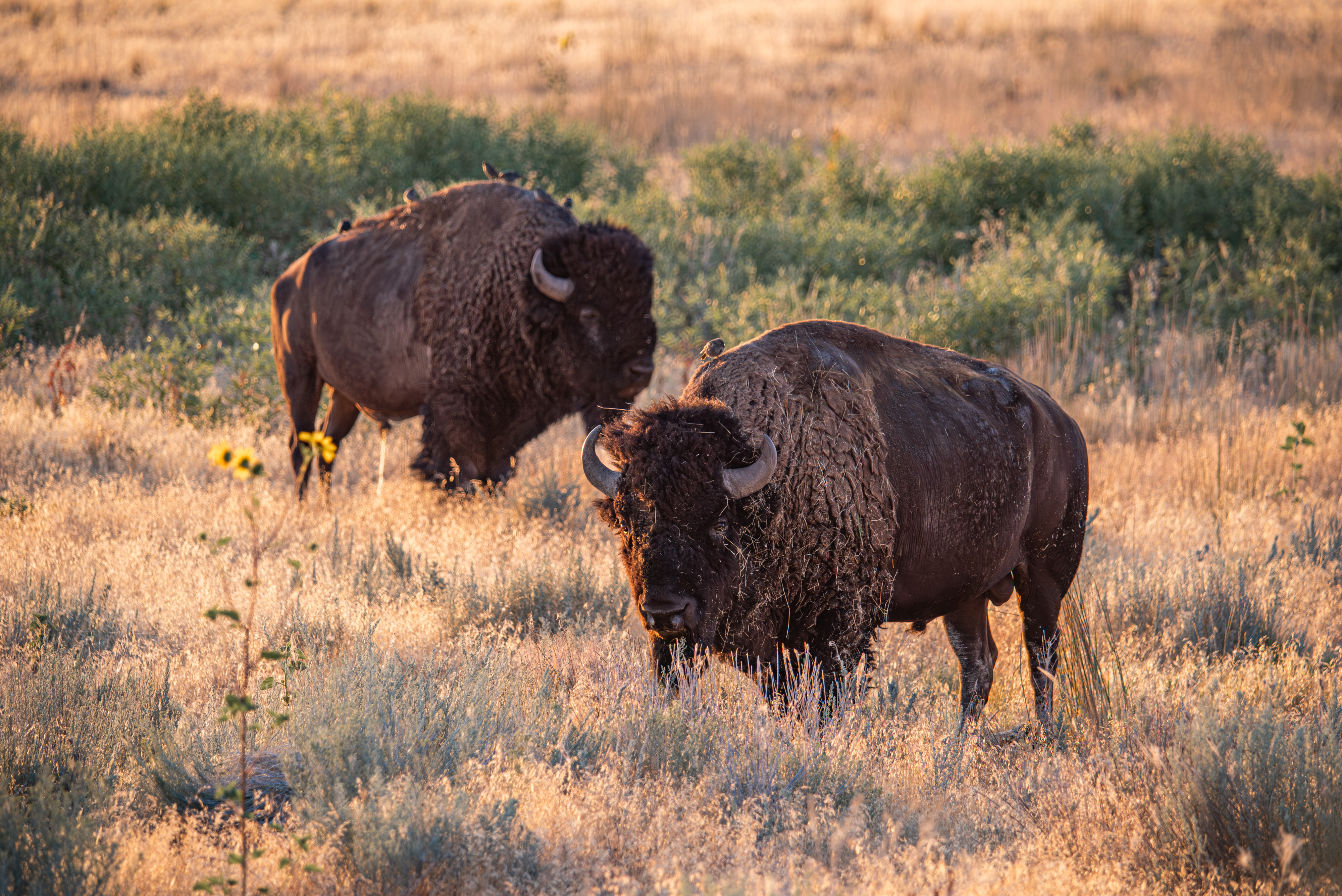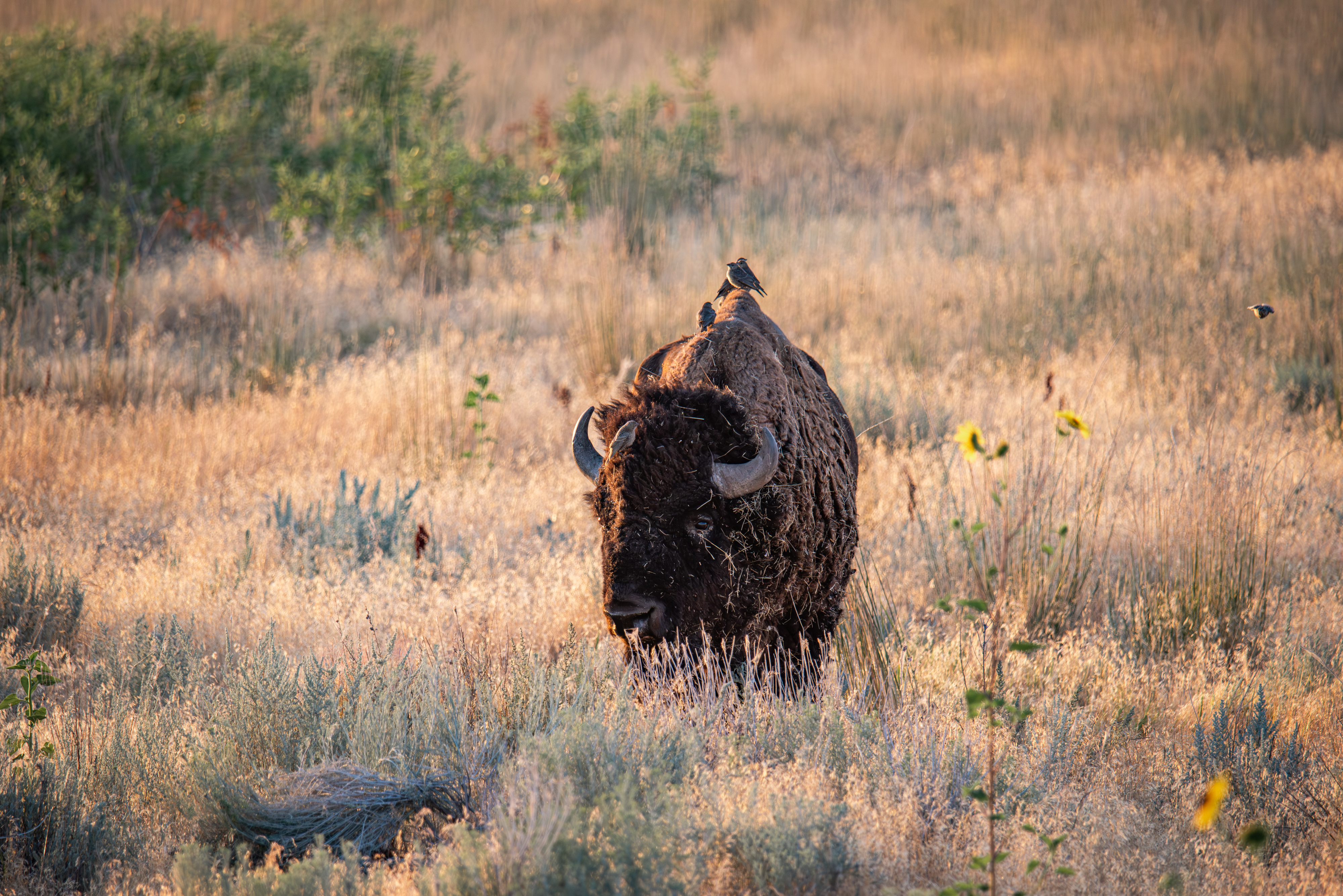 2 Coyotes, tons of bison, bucks, lots of huge orb-weaver spiders , pronghorns & 3 burrowing owls!